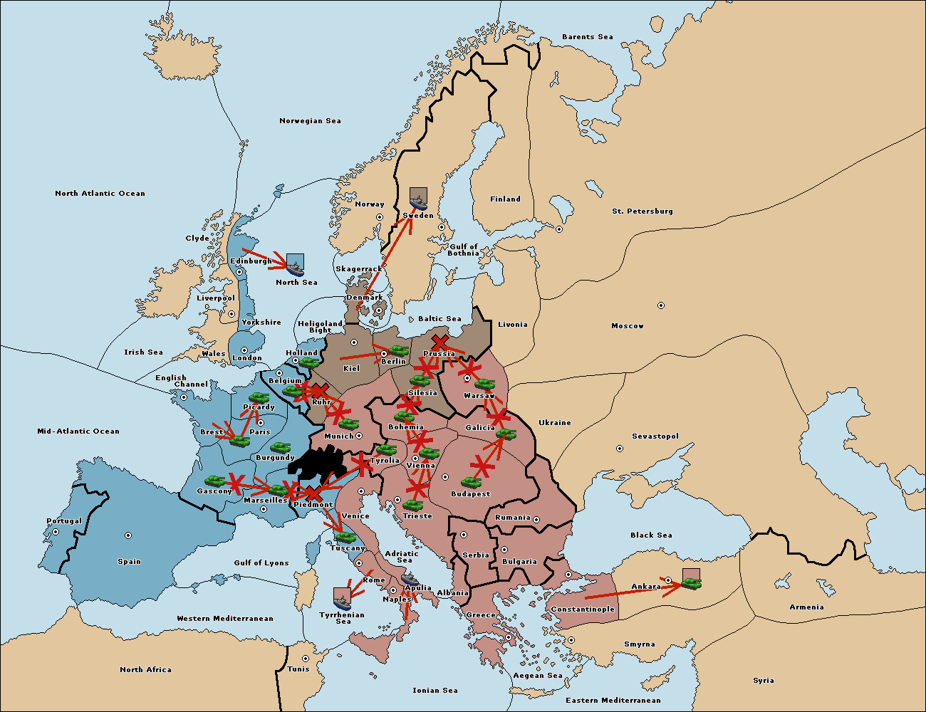 The fleet at Ionian Sea move to Tyrrhenian Sea.