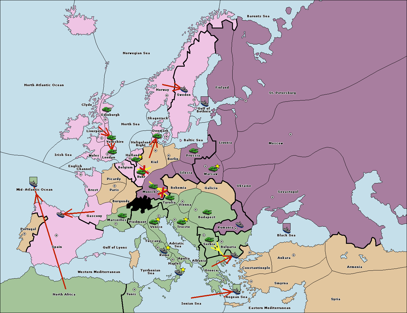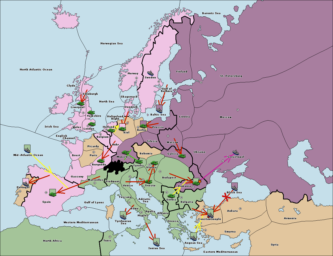The fleet at Bulgaria (South Coast) move to Constantinople.