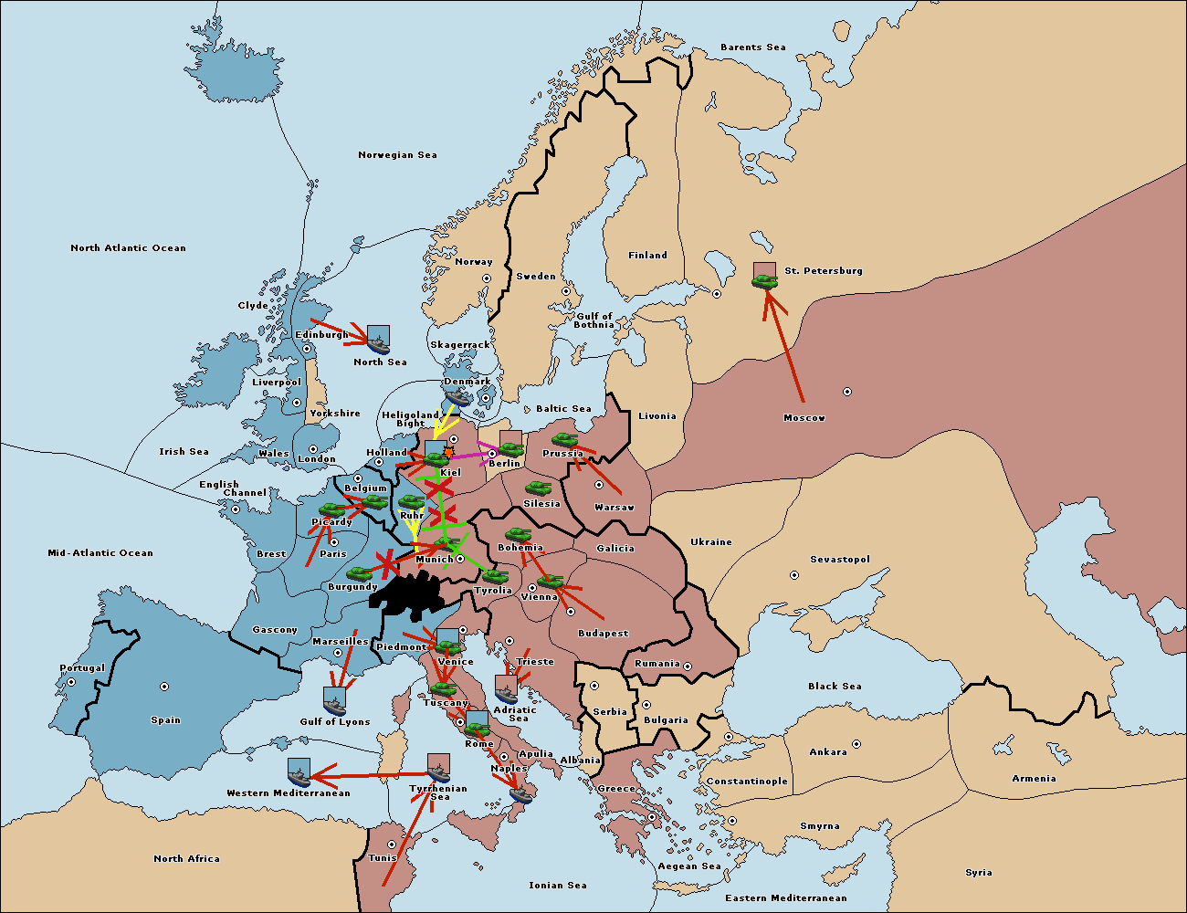 The fleet at Tyrrhenian Sea support move to Ionian Sea from Tunis.