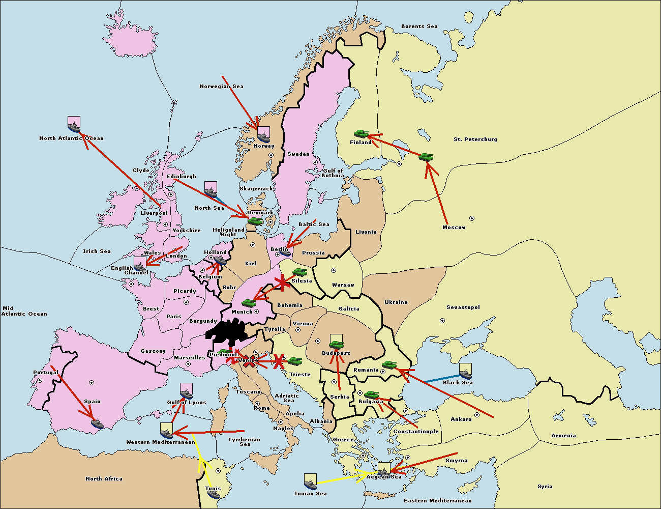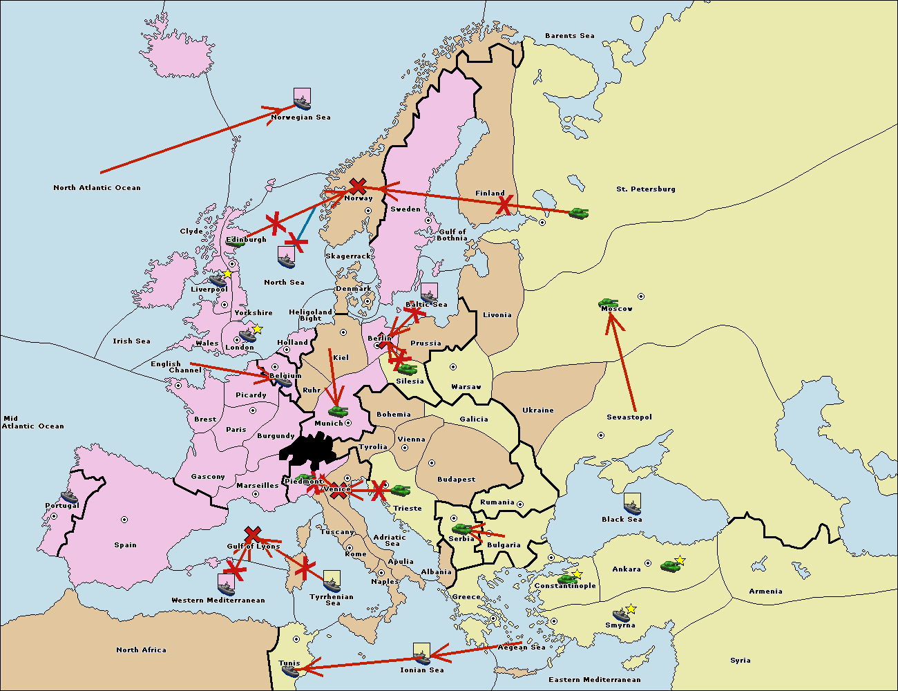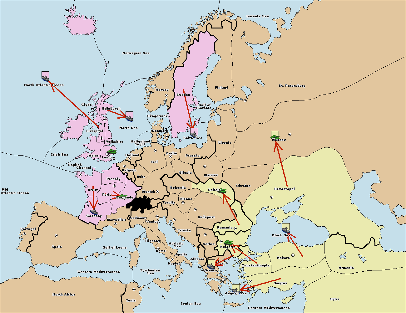 The fleet at Bulgaria (South Coast) move to Greece.