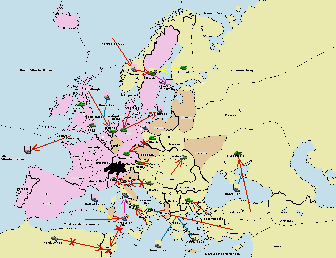 The fleet at Mid-Atlantic Ocean move to Western Mediterranean.