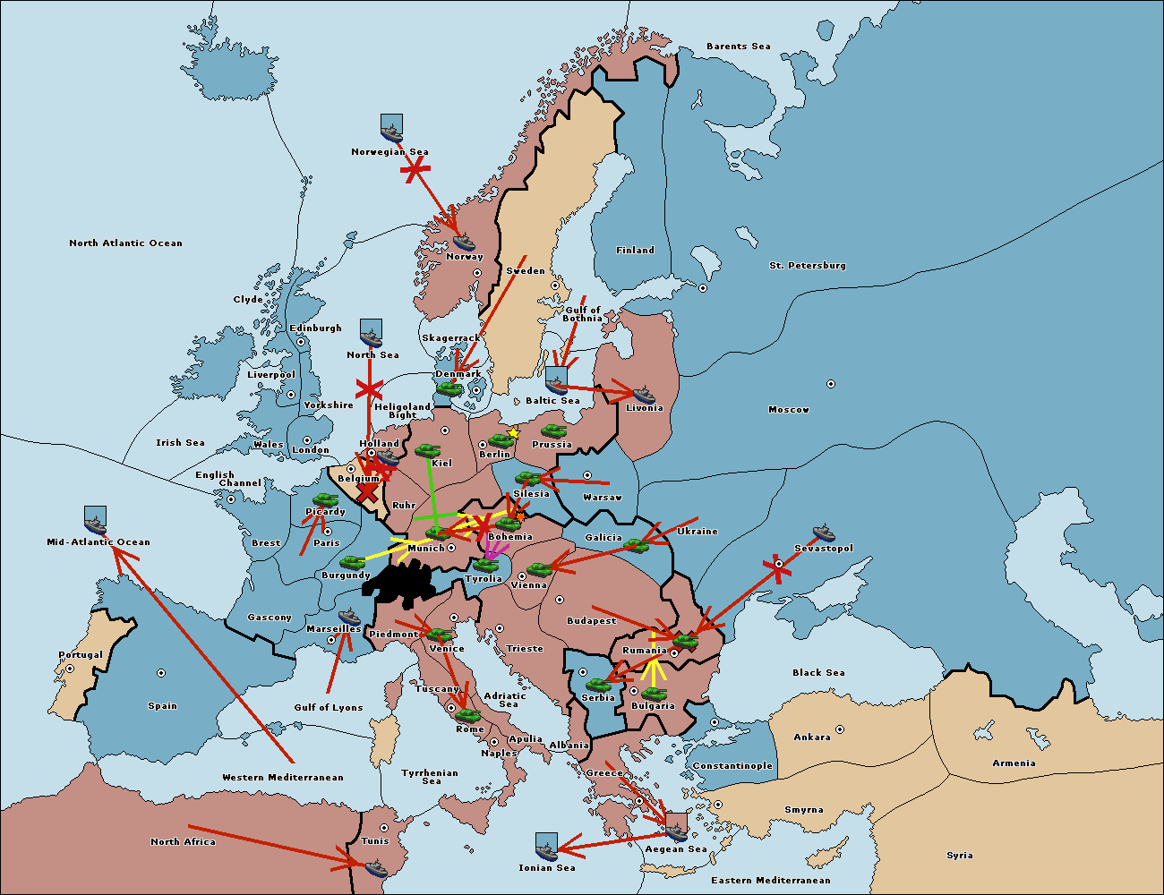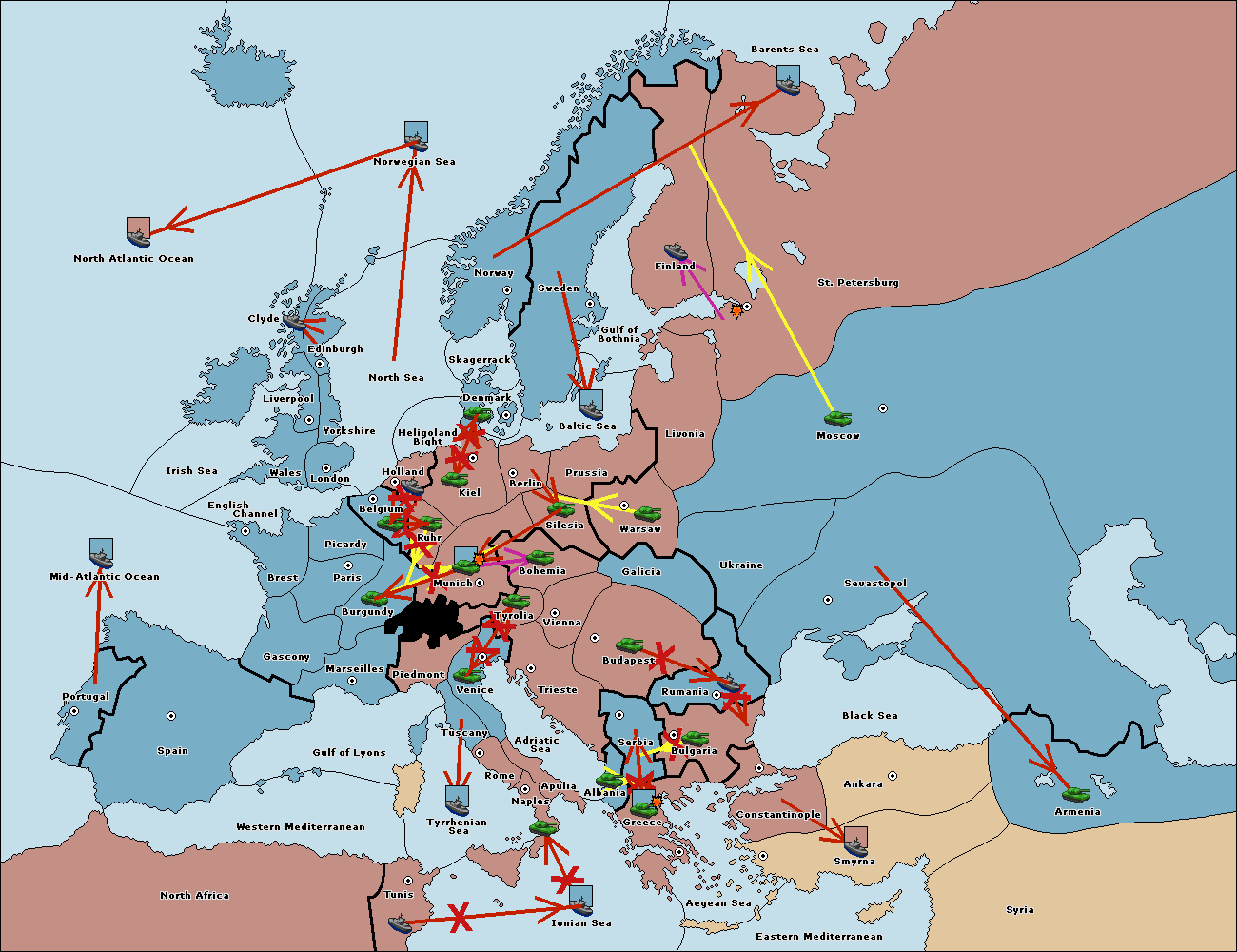 The fleet at Tyrrhenian Sea support move to Naples from Ionian Sea.