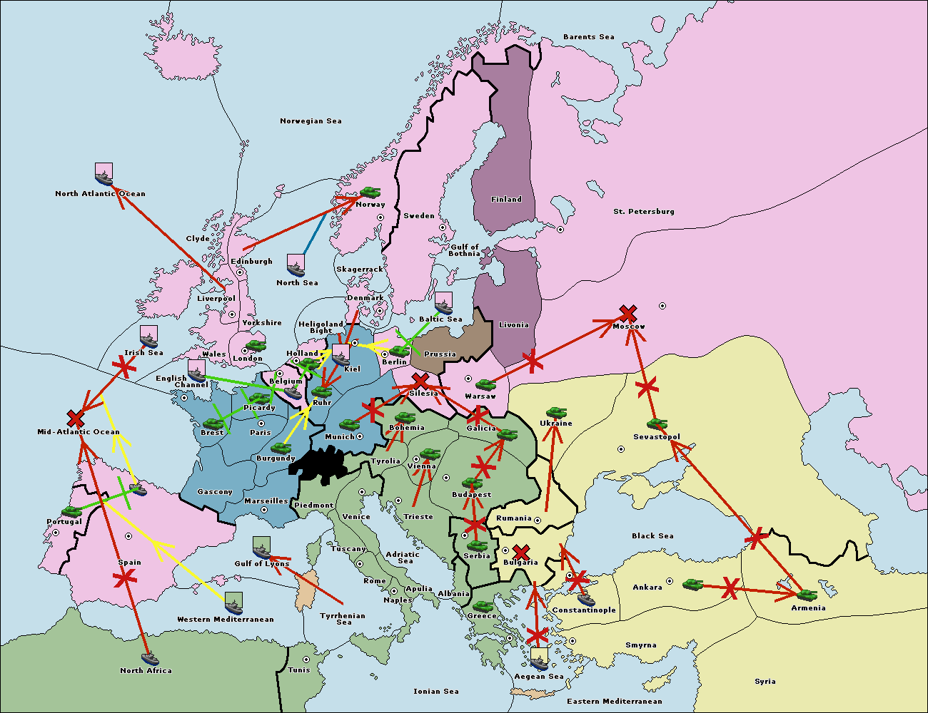 The fleet at North Africa move to Mid-Atlantic Ocean.