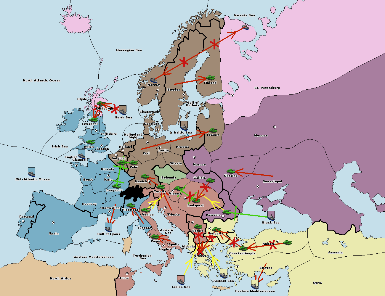 The fleet at Greece support hold to Bulgaria.