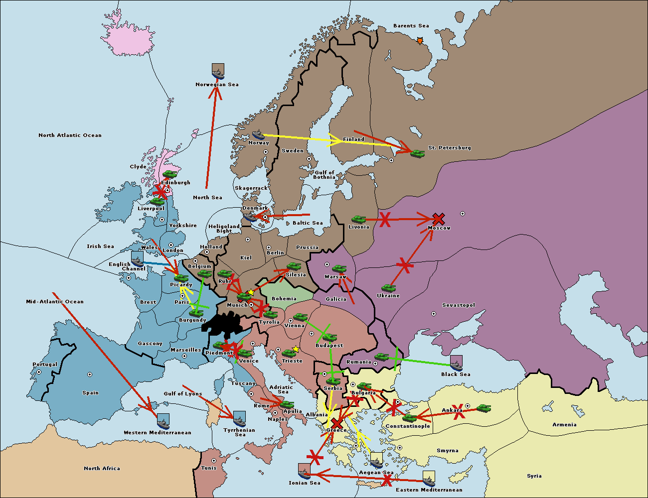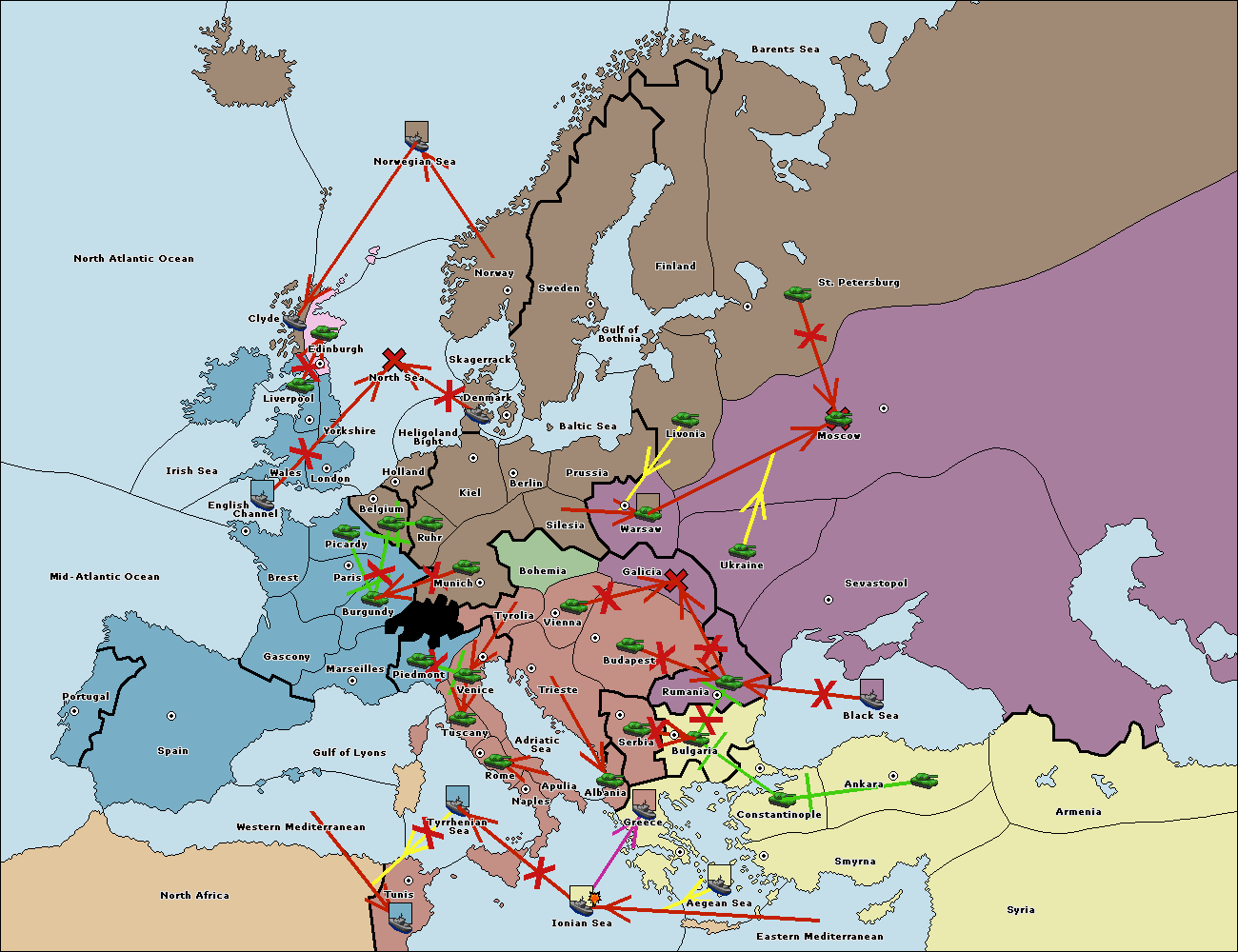 The fleet at Ionian Sea support move to Greece from Bulgaria.