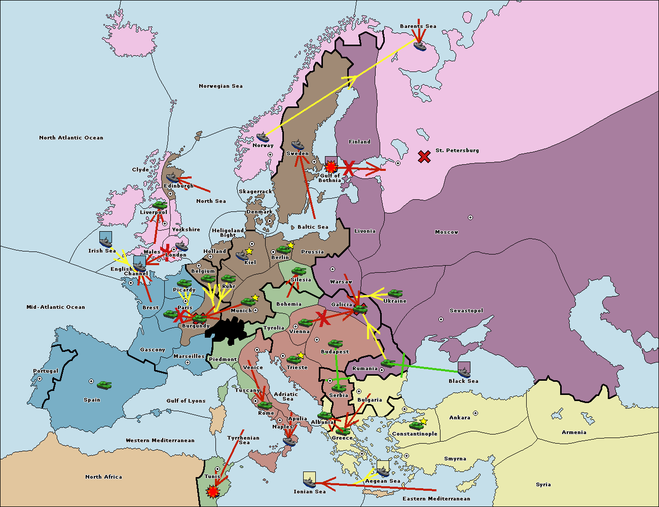 The fleet at Barents Sea move to St. Petersburg (North Coast).