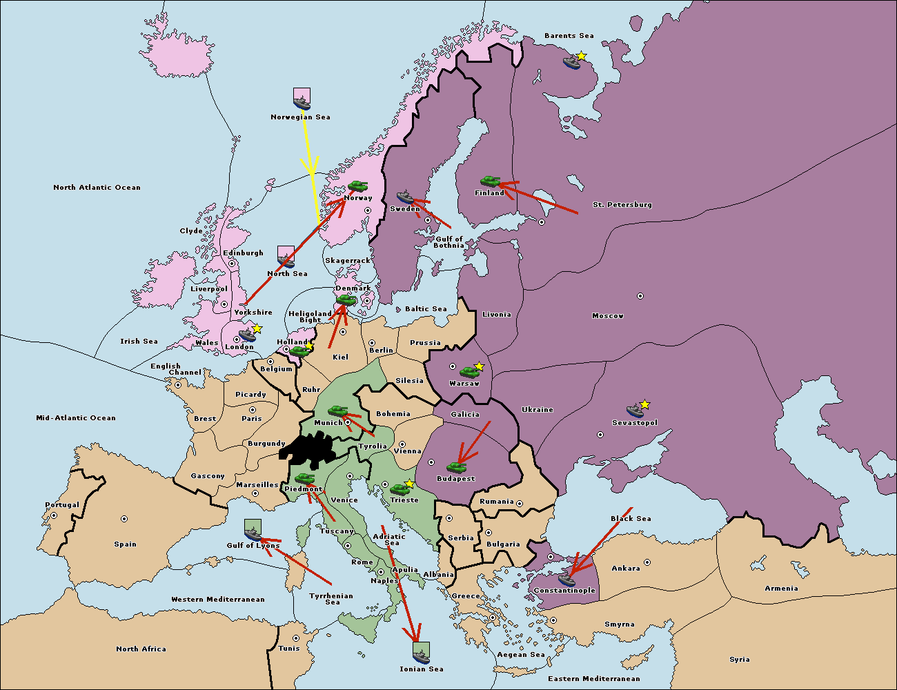 The fleet at St. Petersburg (North Coast) move to Barents Sea.