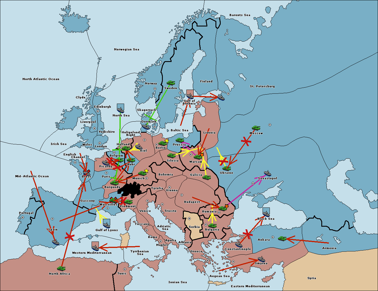 The fleet at Mid-Atlantic Ocean move to Western Mediterranean.