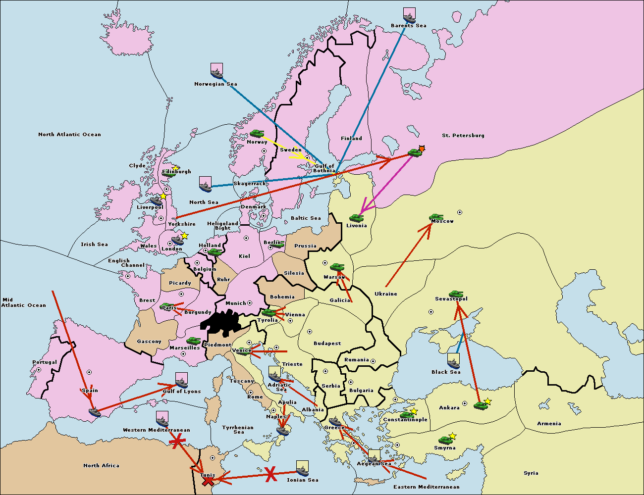 The fleet at Bulgaria (North Coast) move to Constantinople.