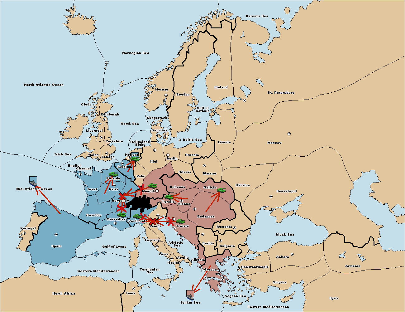 The fleet at Tyrrhenian Sea move to Gulf of Lyons.
