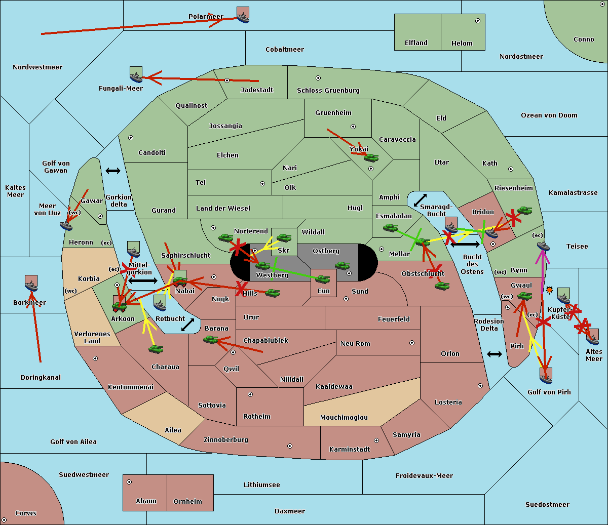 The fleet at Smaragt Bucht support move to Bridon from Bucht des Ostens.