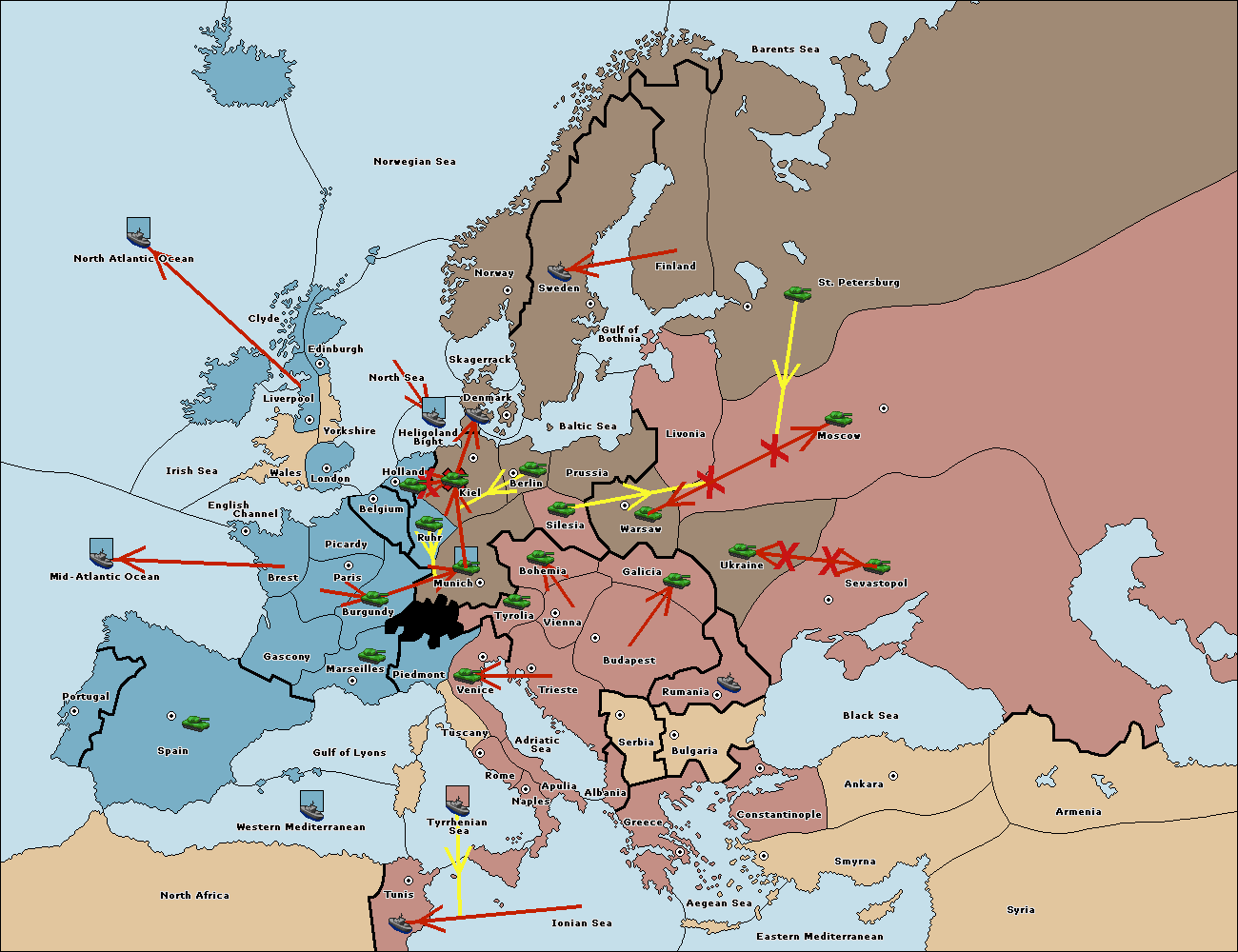 The fleet at Mid-Atlantic Ocean move to Western Mediterranean.