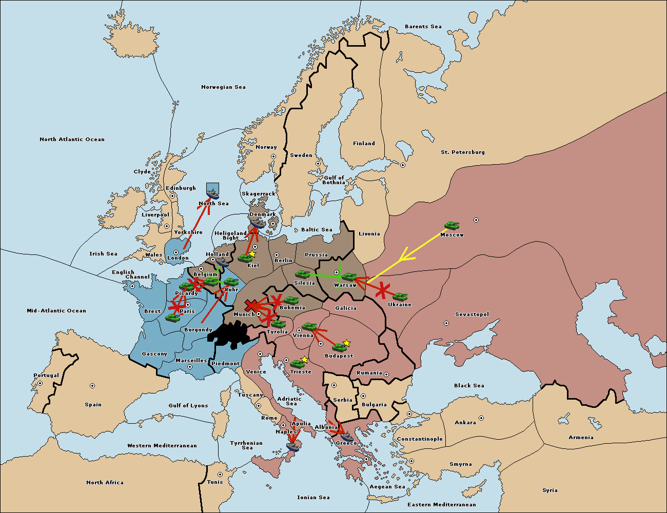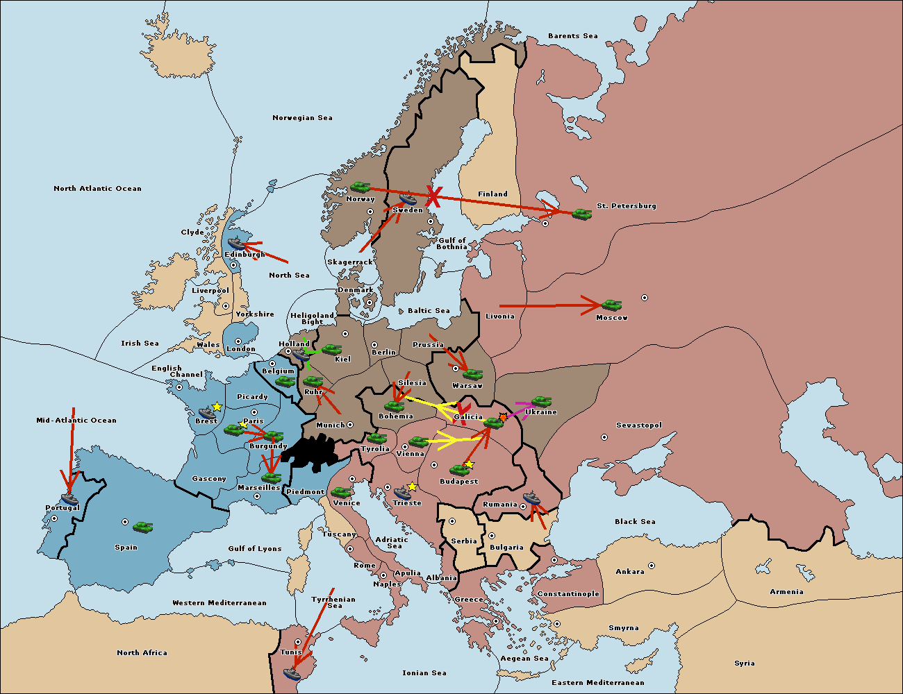 The fleet at Bulgaria (South Coast) move to Constantinople.