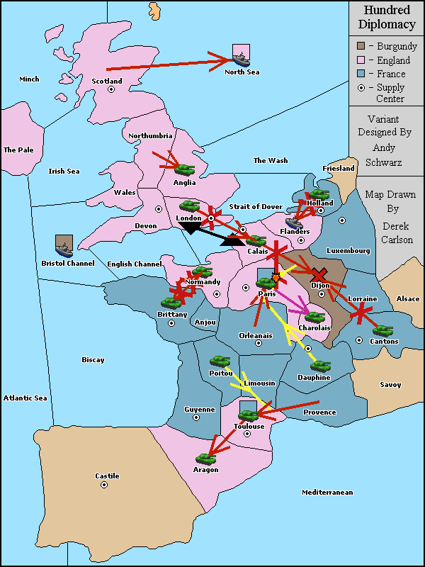 The army at Dijon move to Calais.