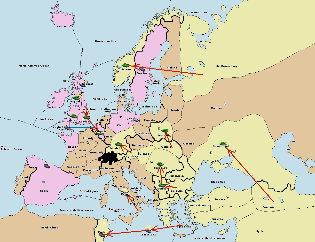 The fleet at Constantinople move to Bulgaria (South Coast).
