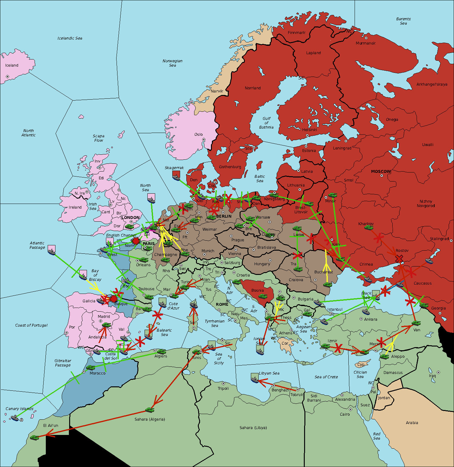 The fleet at English Channel support move to Brest from Normandy.