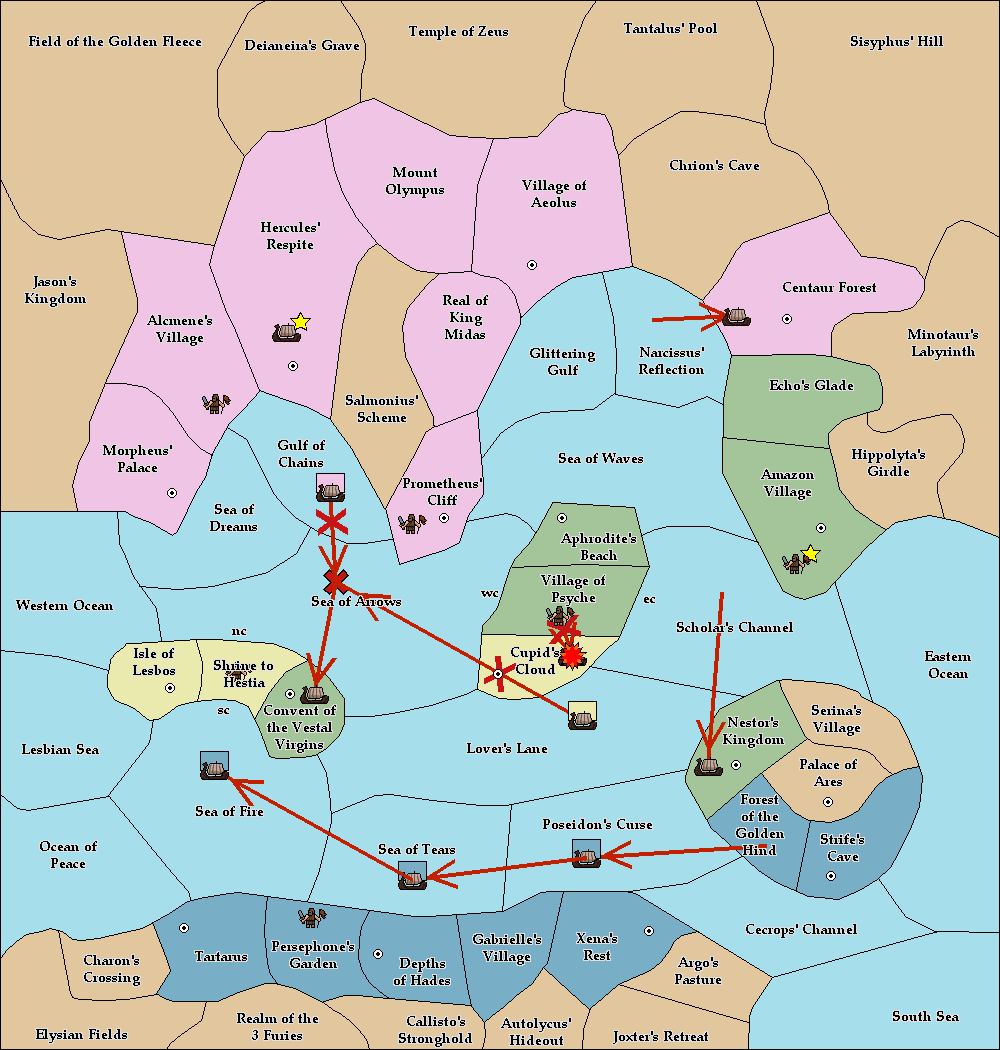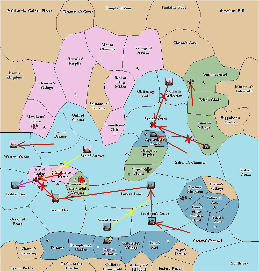 The fleet at Isle of Lesbos support move to Sea of Arrows from Gulf of Chains.