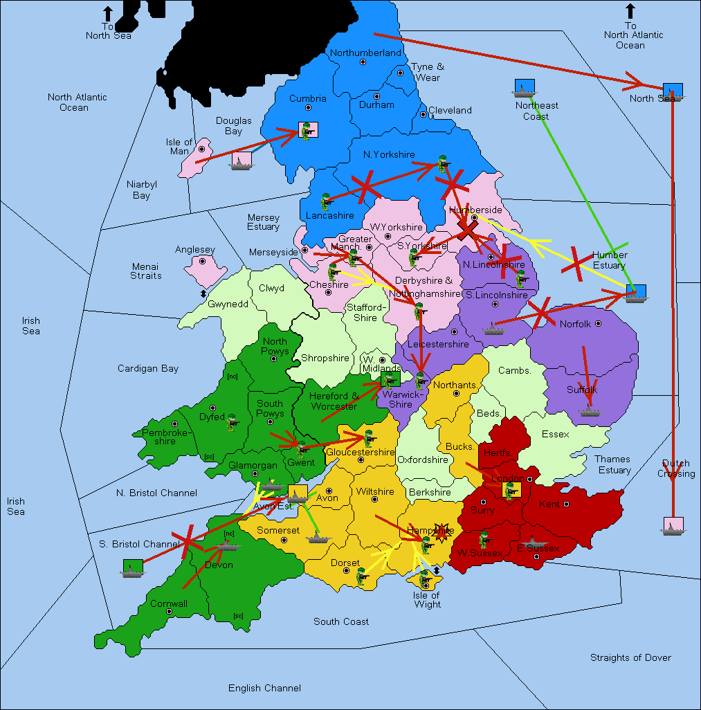 The fleet at N.Bristol Channel move to S.Bristol Channel.