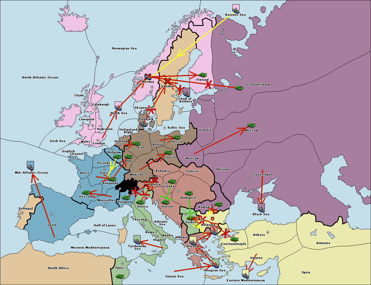 The fleet at Bulgaria (South Coast) support hold to Greece.