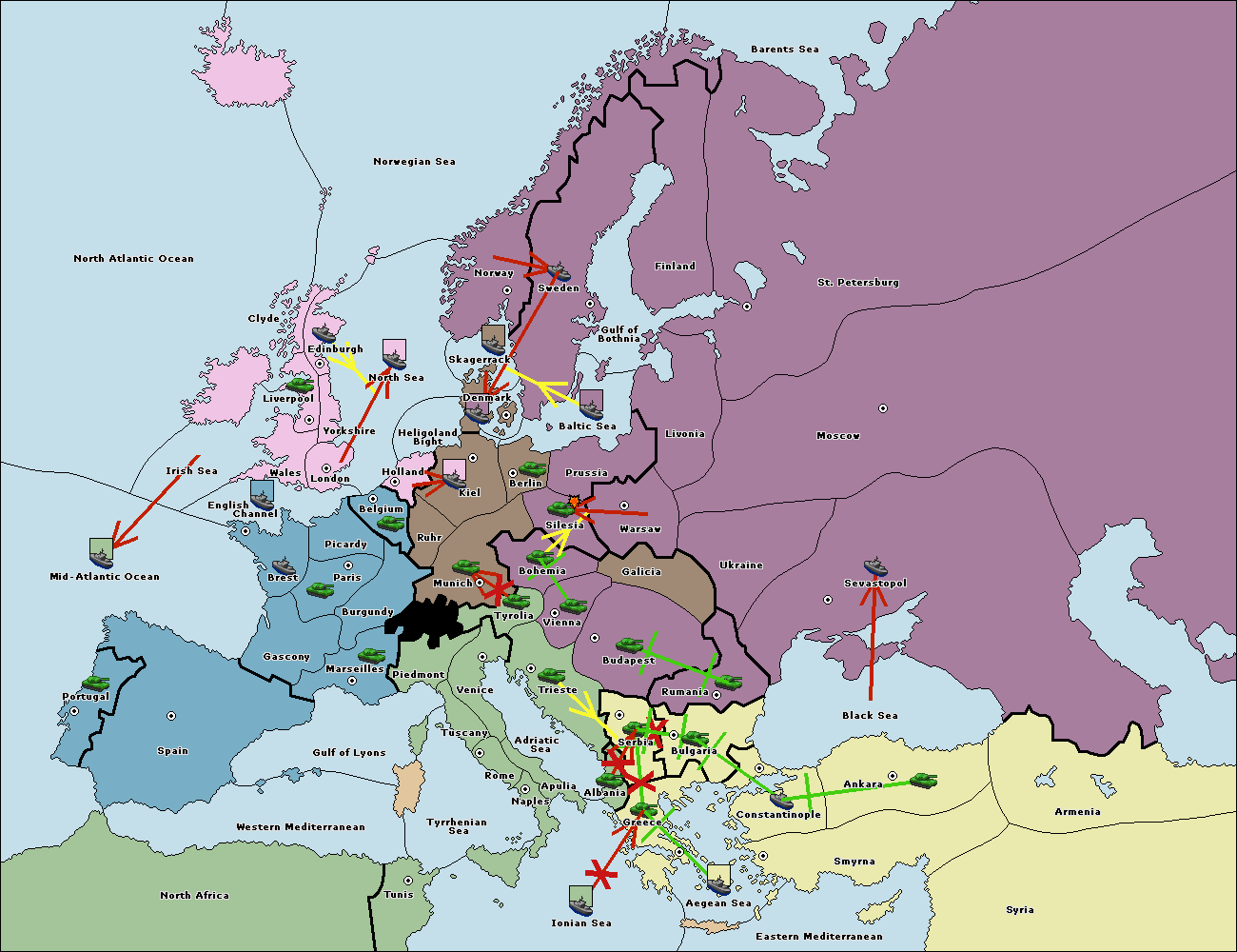 The fleet at Ionian Sea support move to Albania from Trieste.