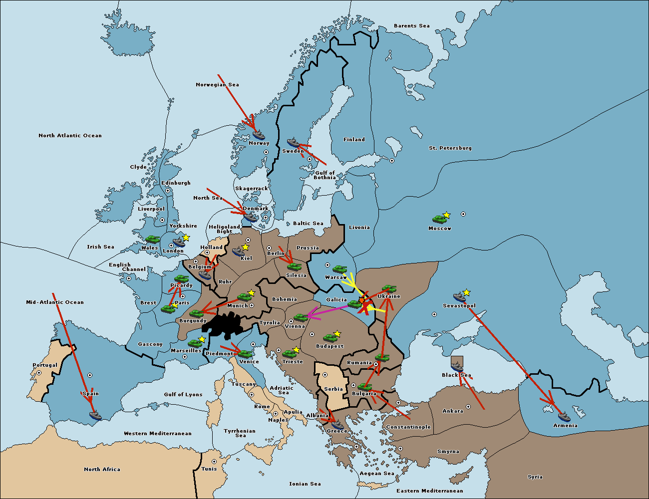 The fleet at Armenia move to Black Sea.