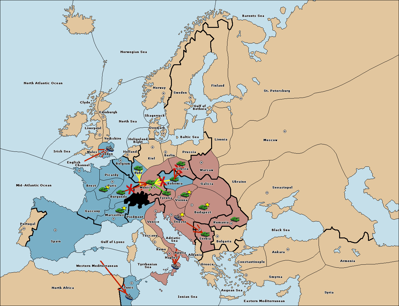 The army at Tyrolia support move to Bohemia from Vienna.