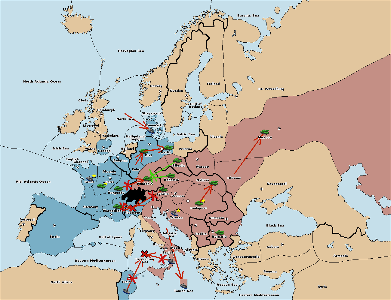 The fleet at Tyrrhenian Sea support hold to Tunis.