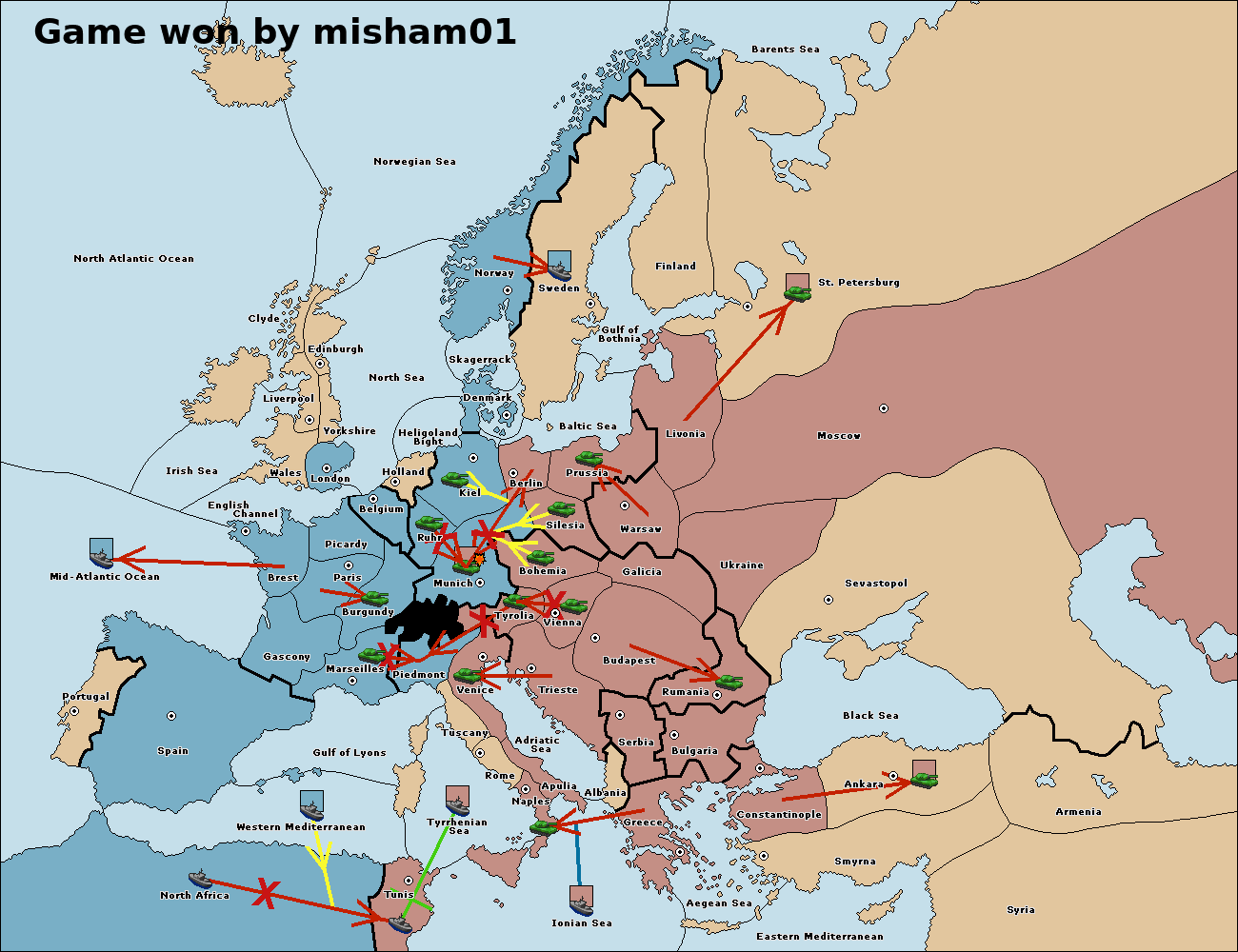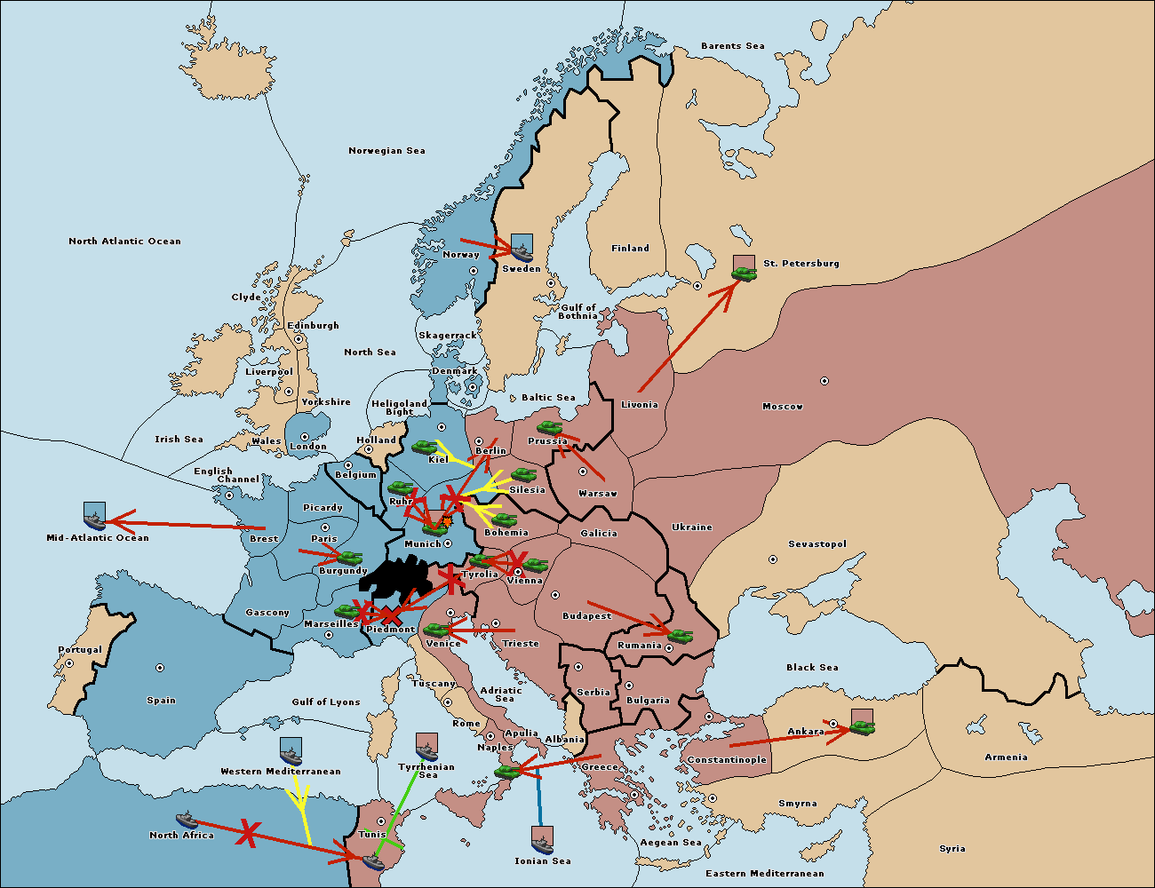 The fleet at Mid-Atlantic Ocean move to Western Mediterranean.