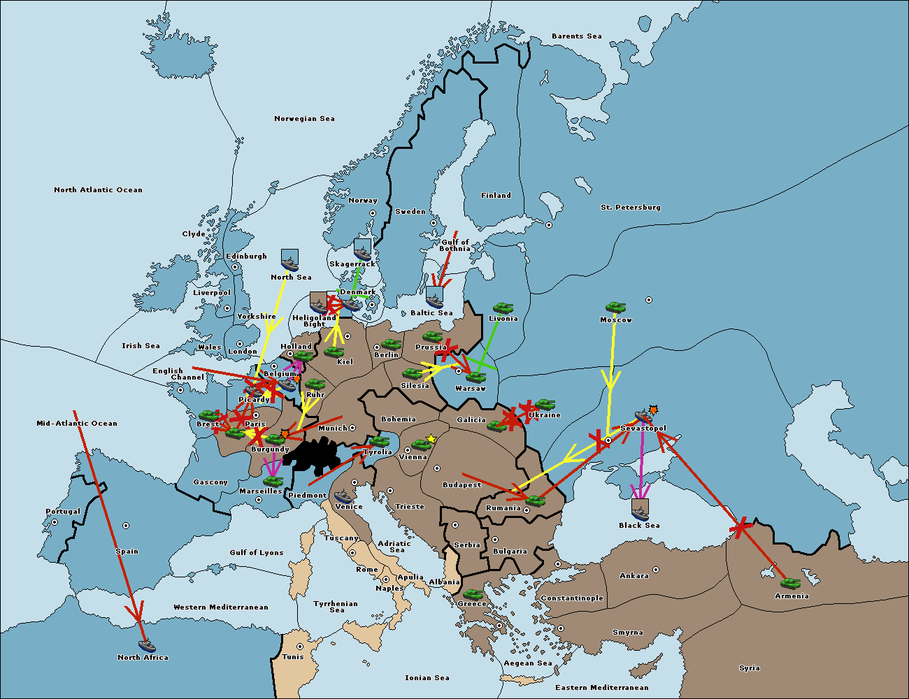The fleet at Sevastopol support move to Rumania from Budapest.