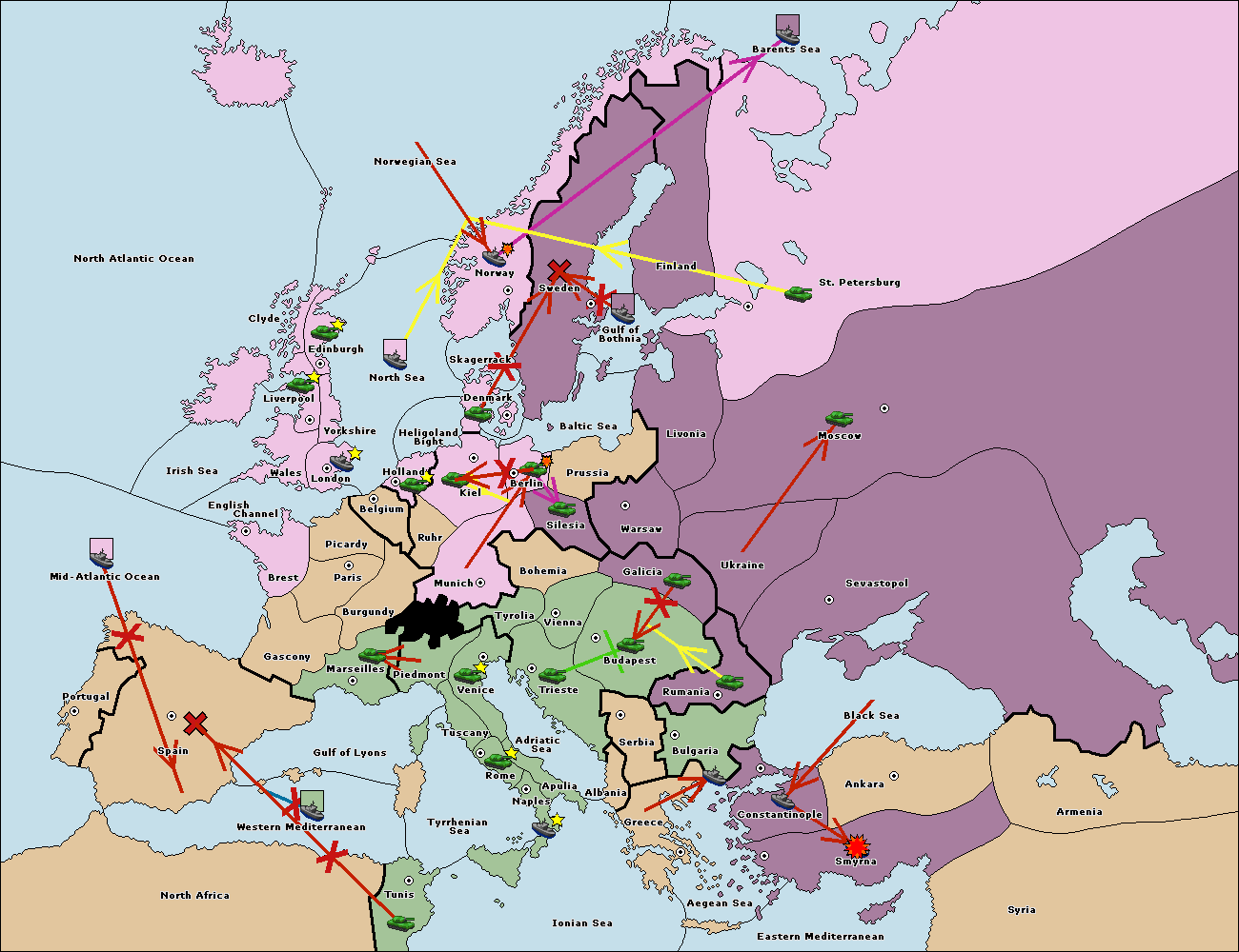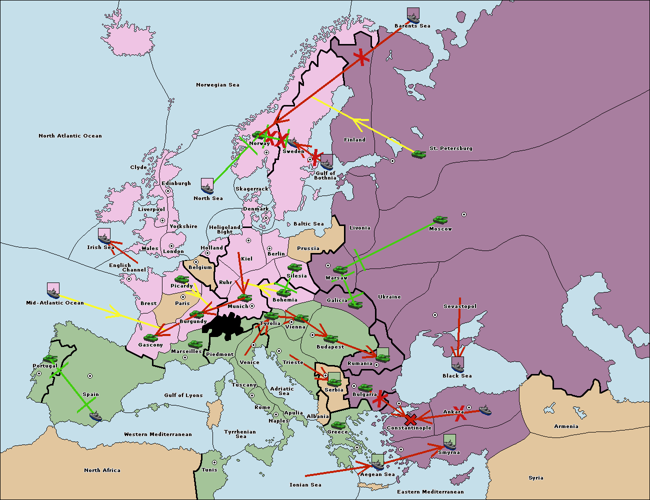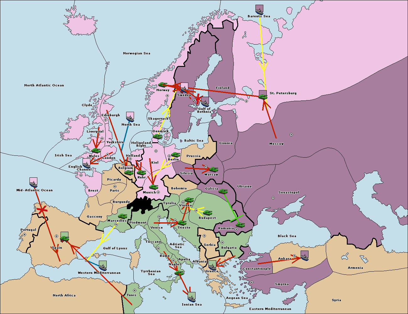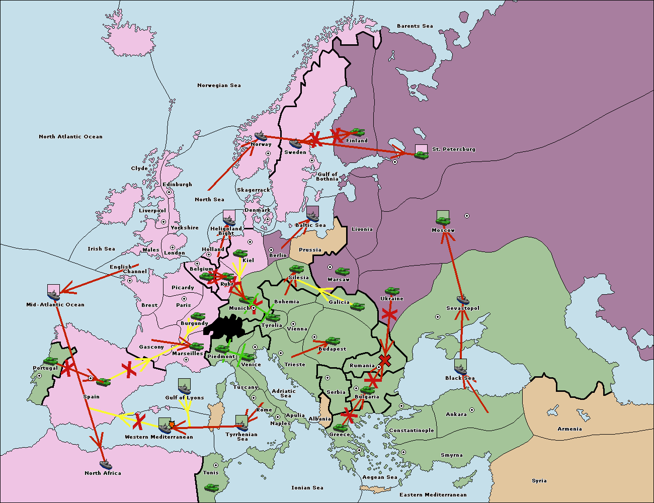 The fleet at Bulgaria (North Coast) move to Constantinople.