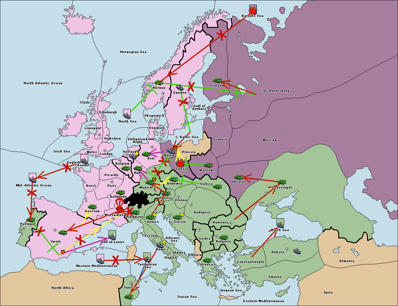 The fleet at Gulf of Lyons support move to Marseilles from Piedmont.