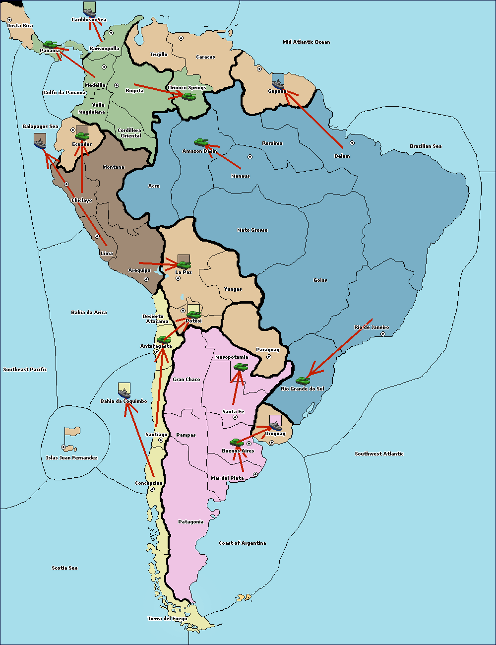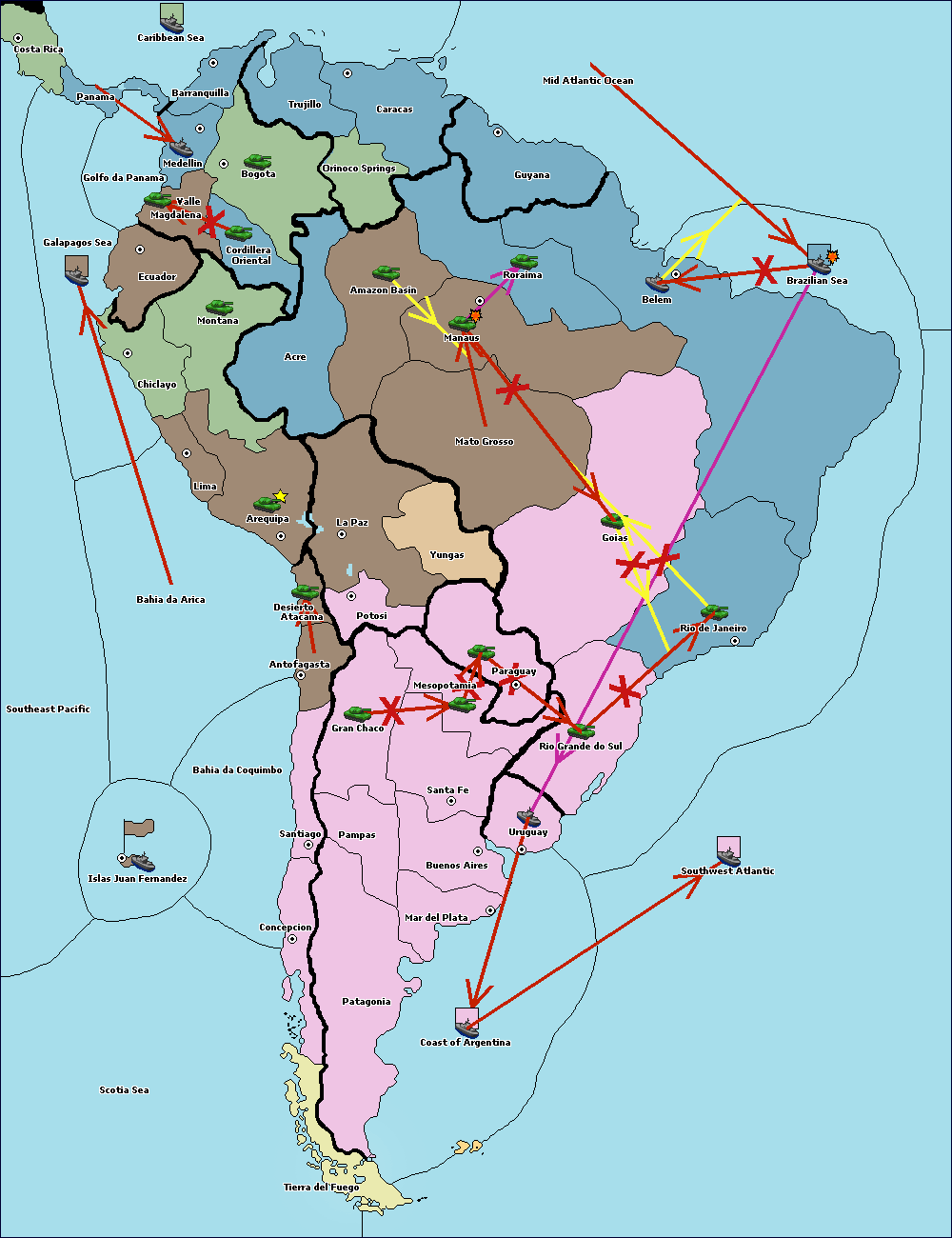 The fleet at Golfo de Panama support move to Valle Magdalena from Ecuador.