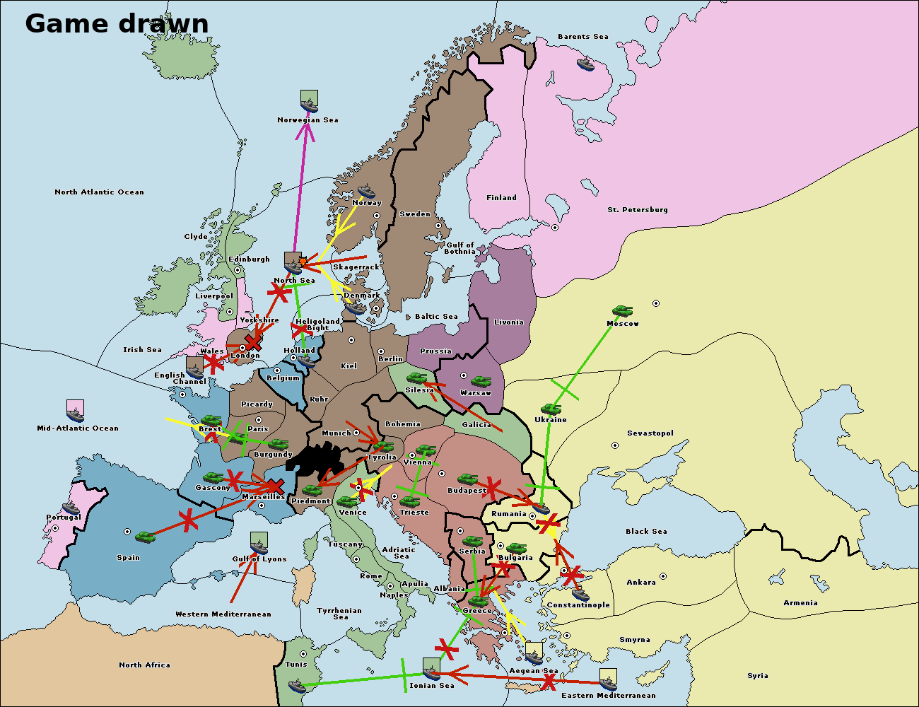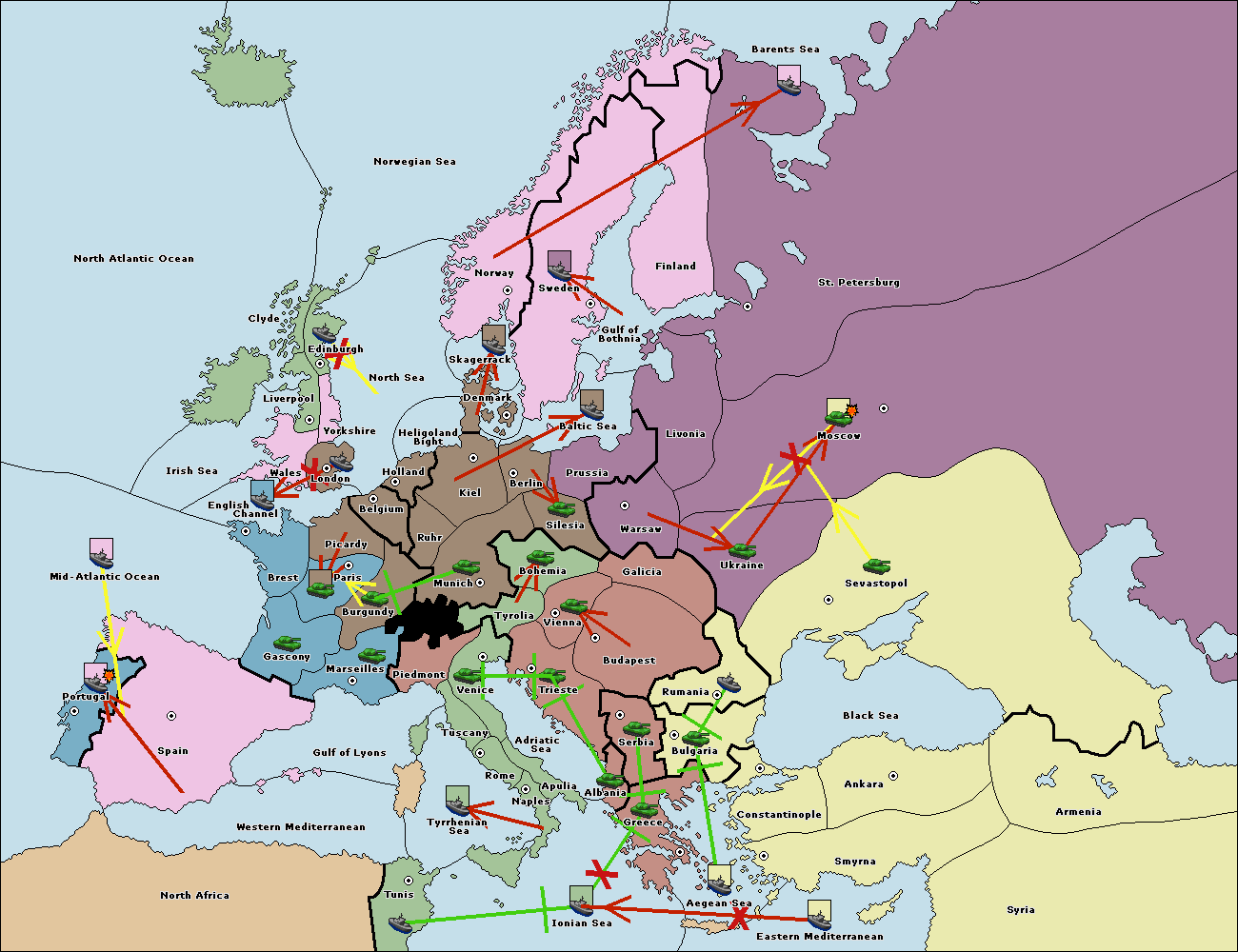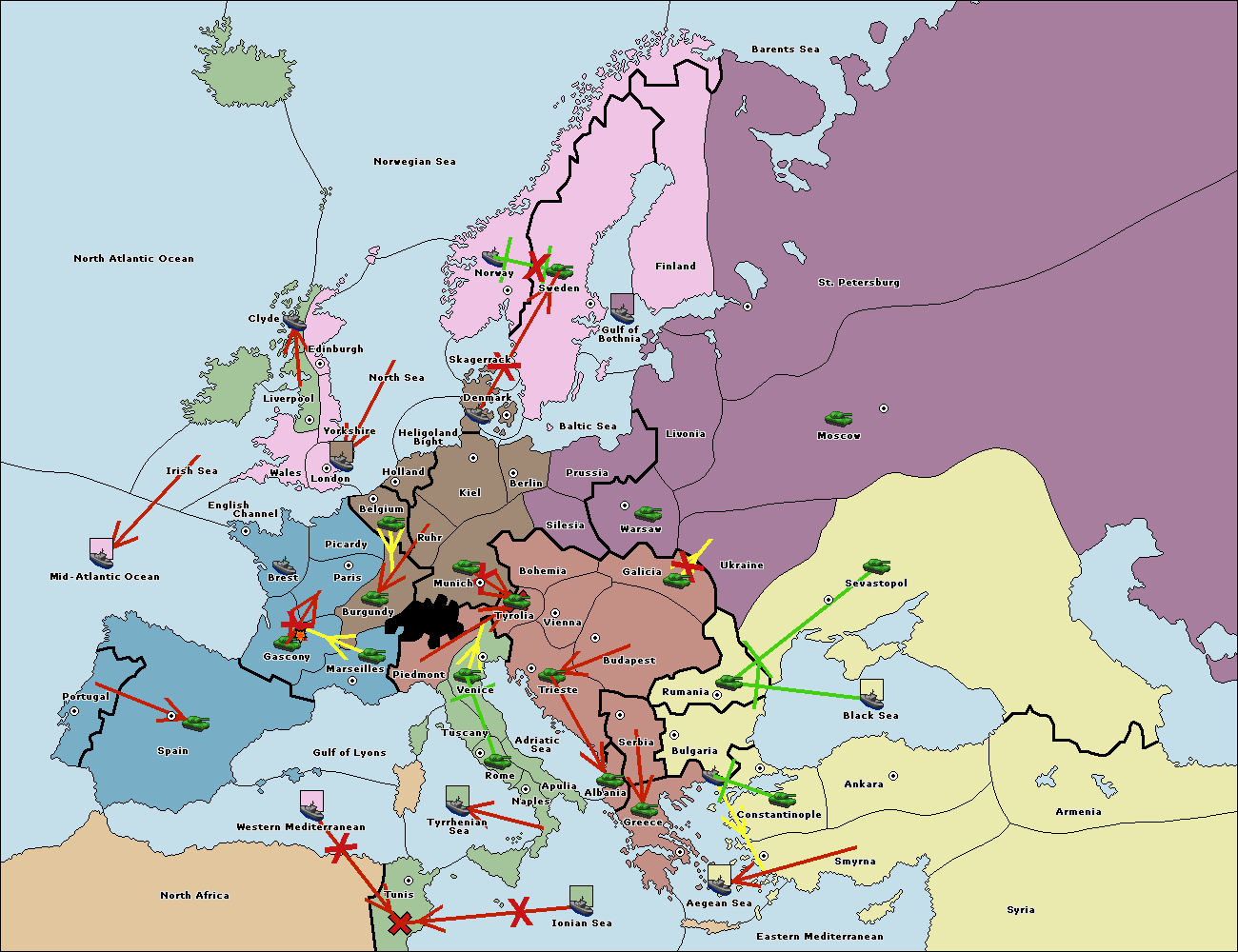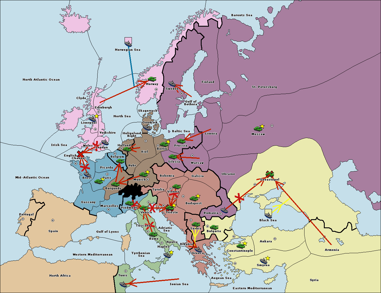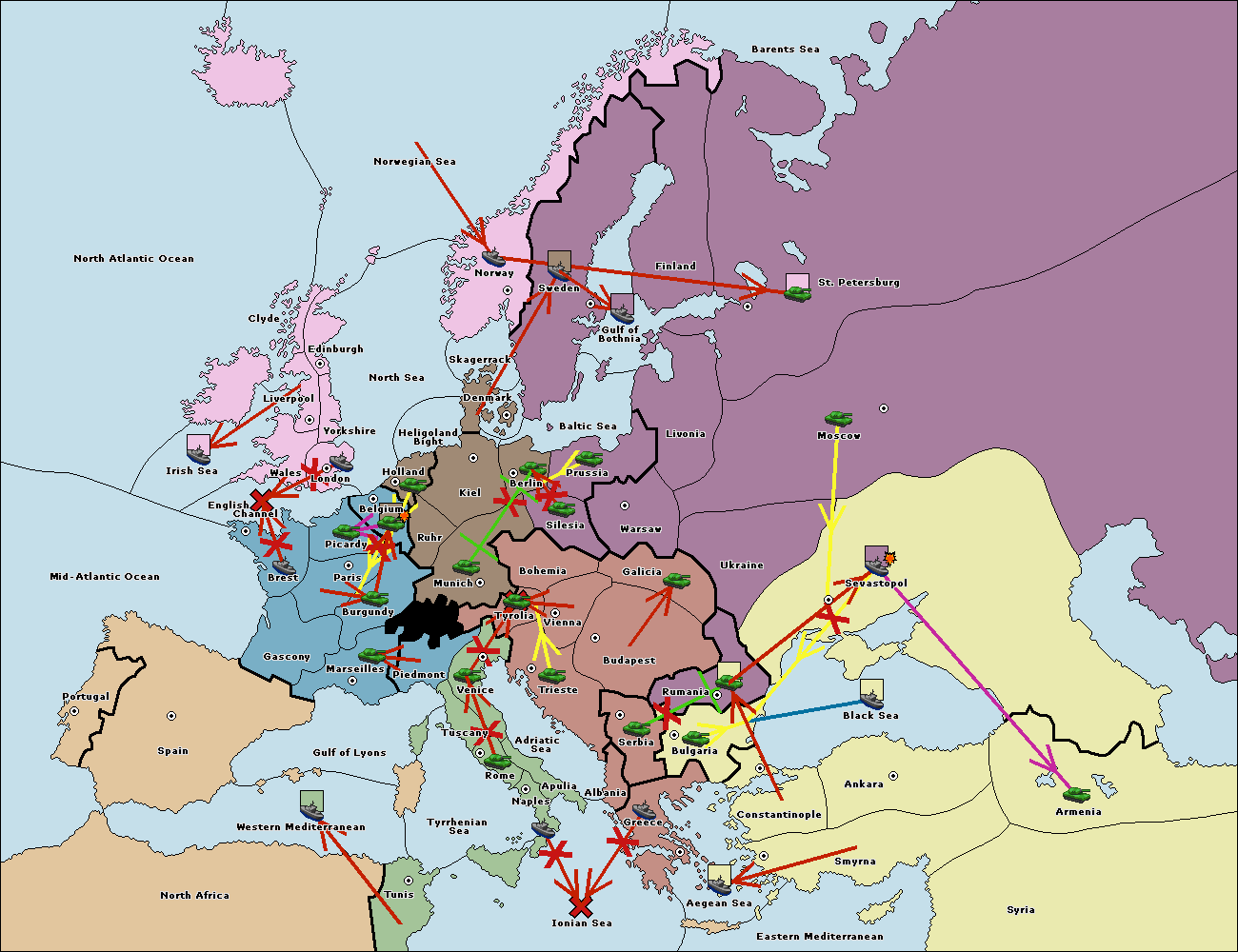 The fleet at Rumania support move to Bulgaria from Constantinople.