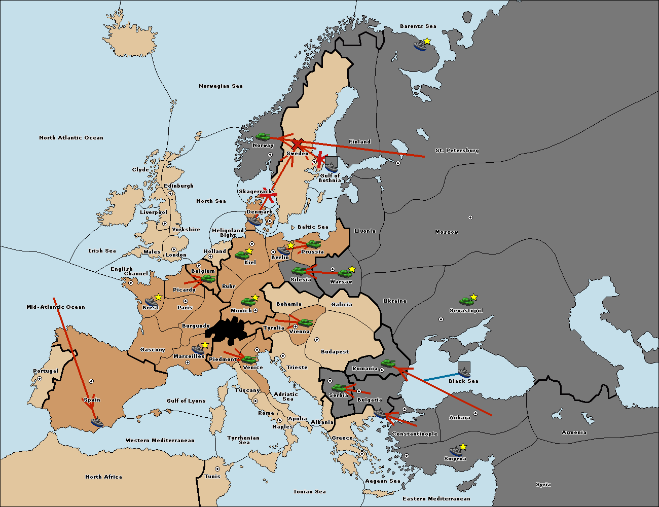 The fleet at Sweden support hold to Norway.