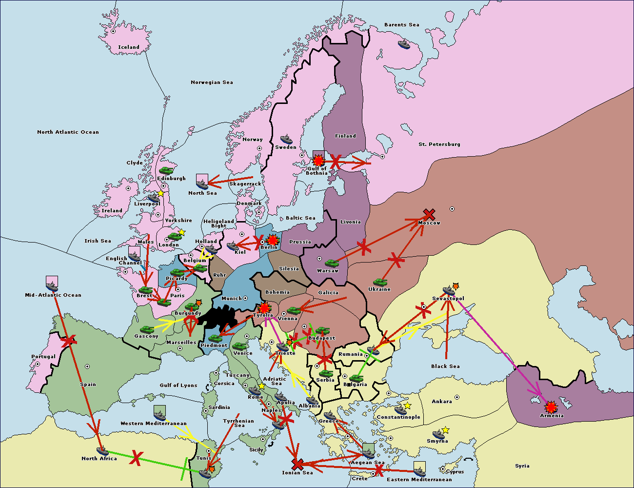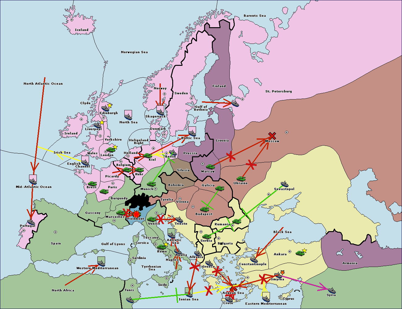 The fleet at Bulgaria (South Coast) support move to Greece from Albania.