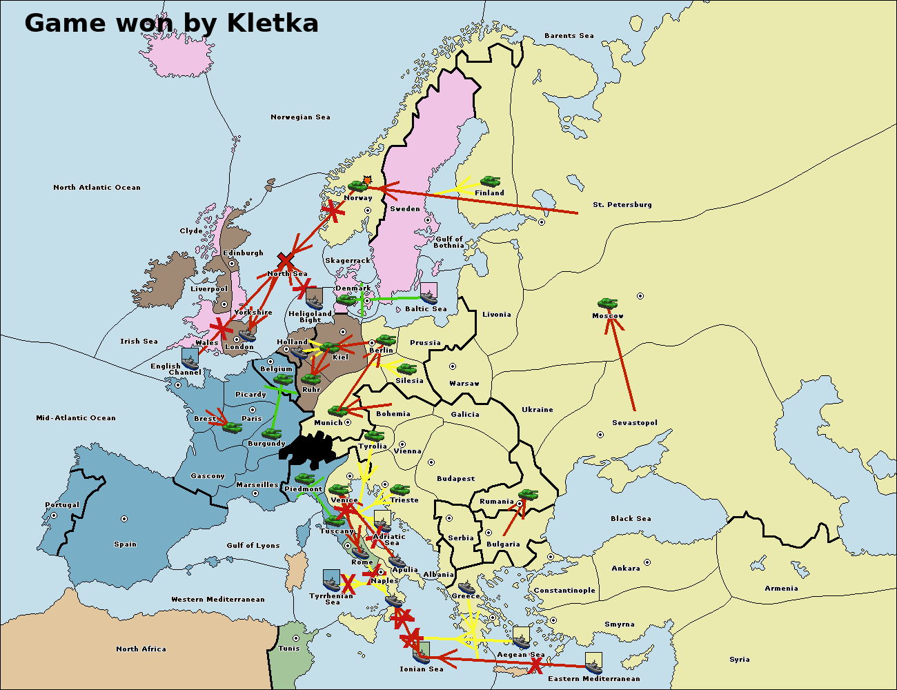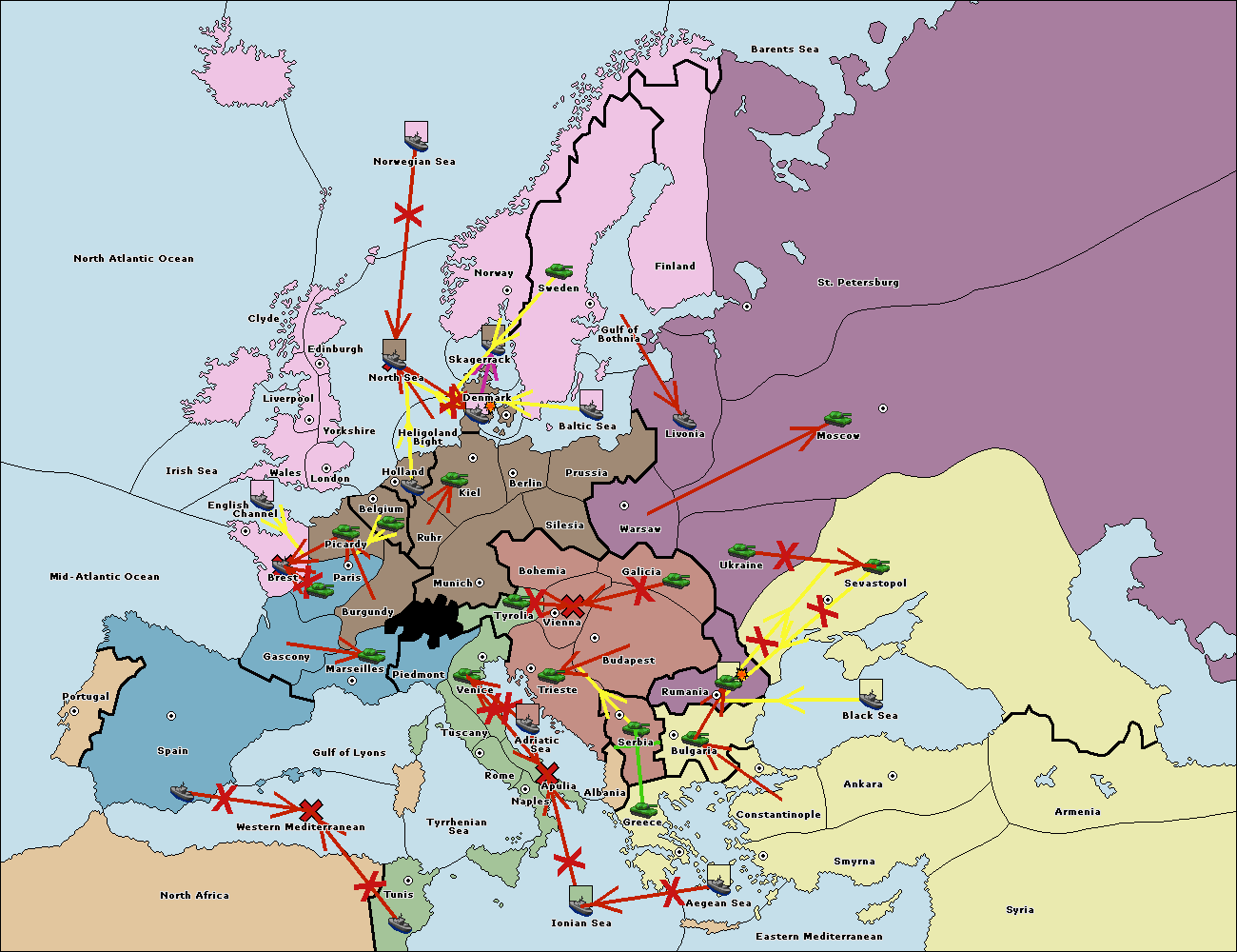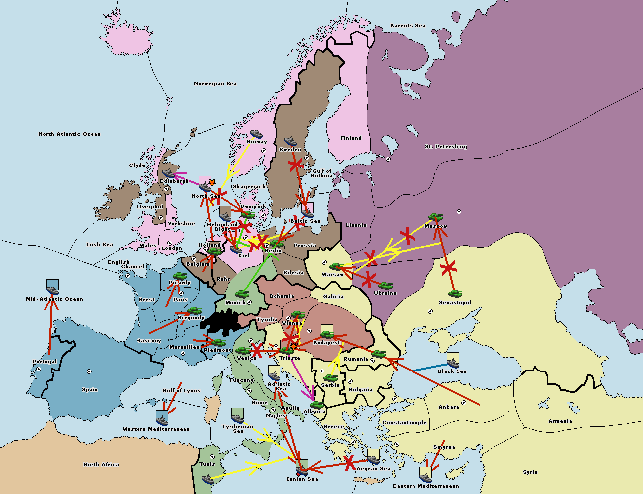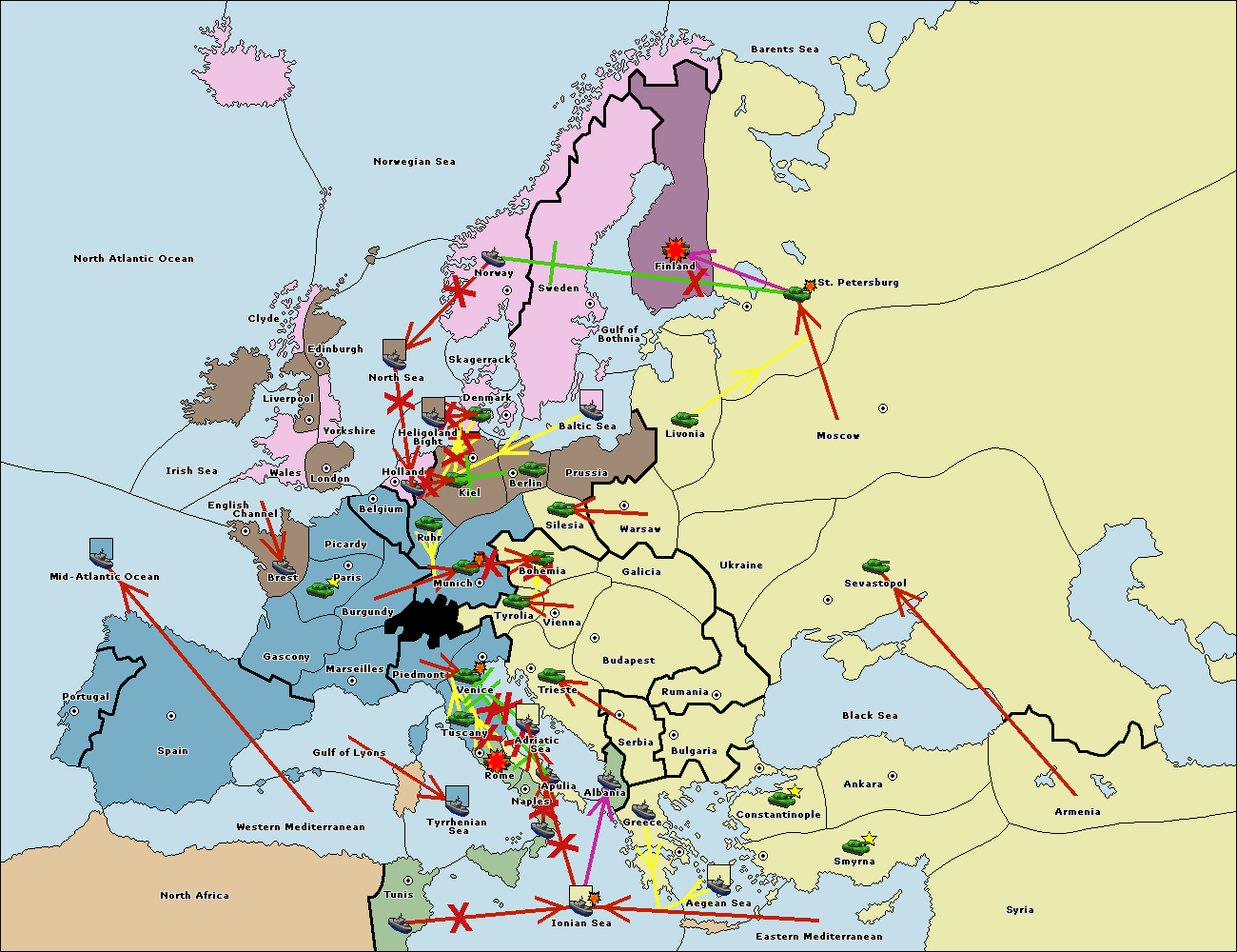 The fleet at Holland support move to Kiel from Berlin.
