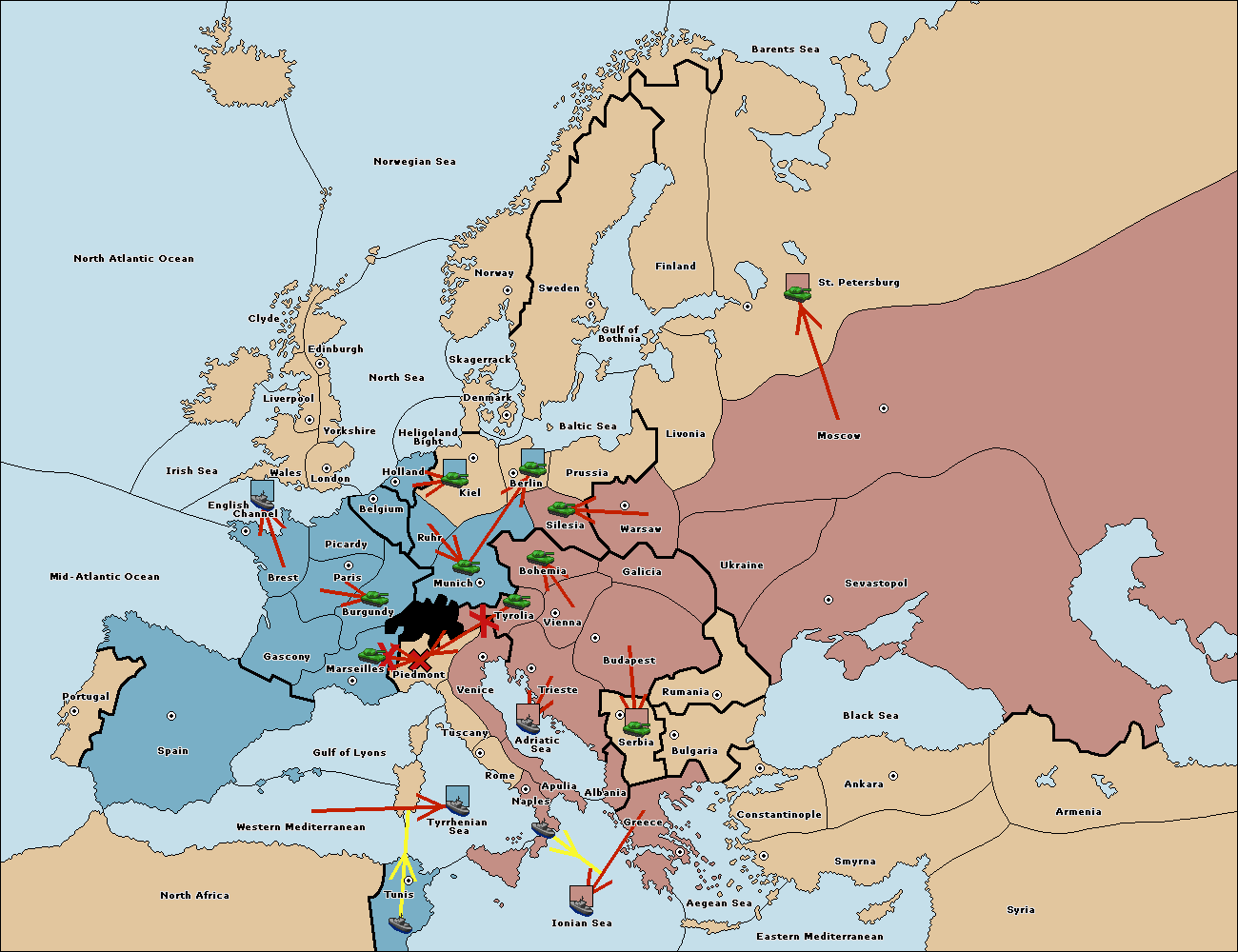 The fleet at Tyrrhenian Sea support move to Ionian Sea from Tunis.