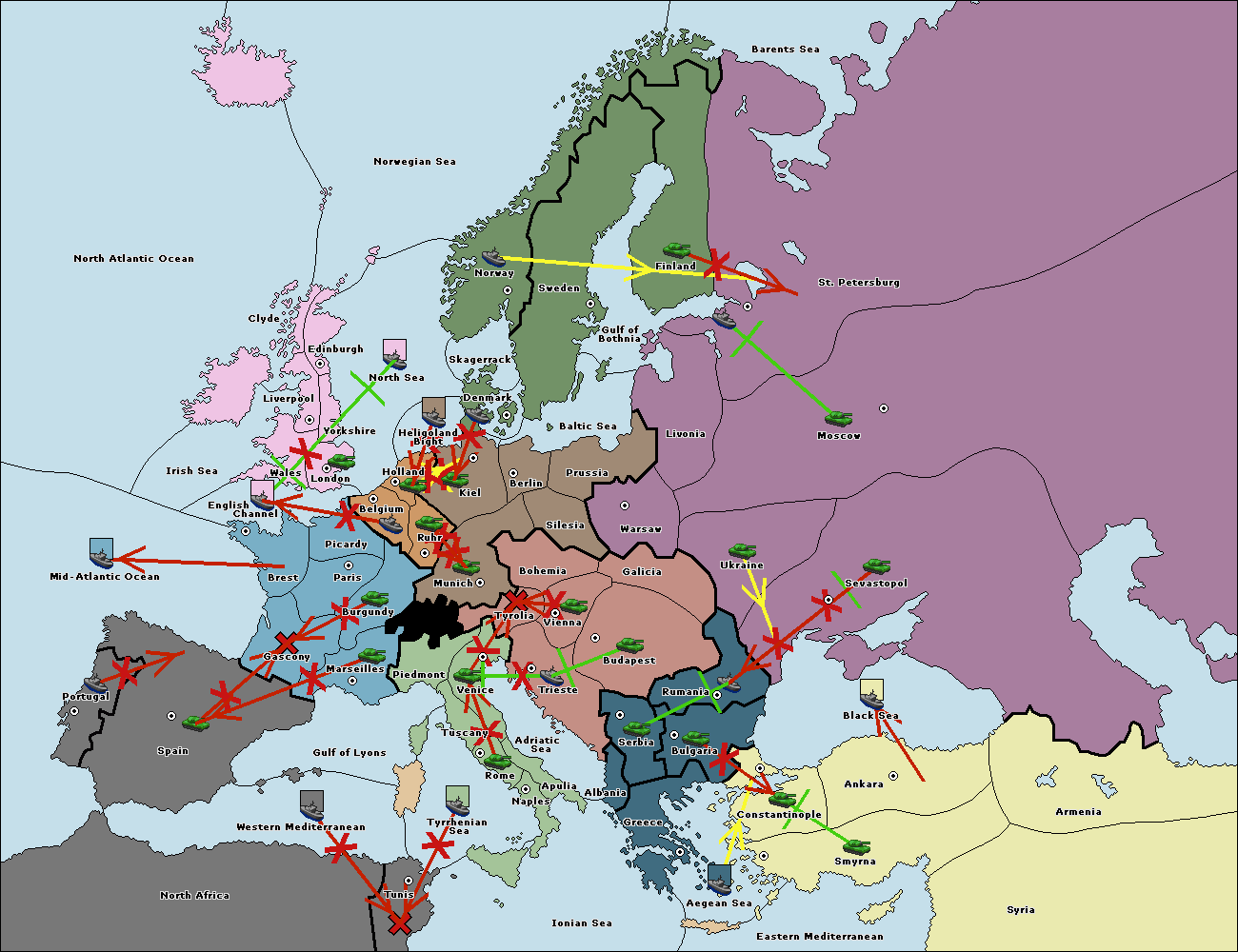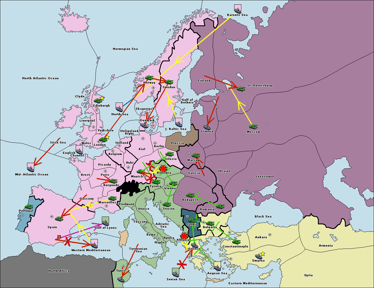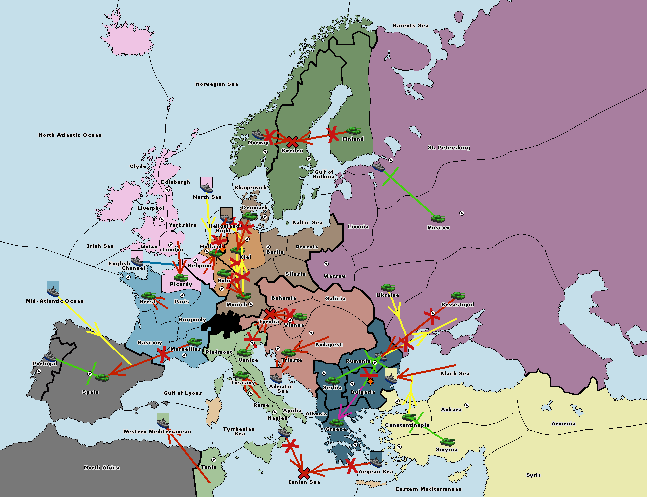 The fleet at Bulgaria (North Coast) support move to Rumania from Sevastopol.