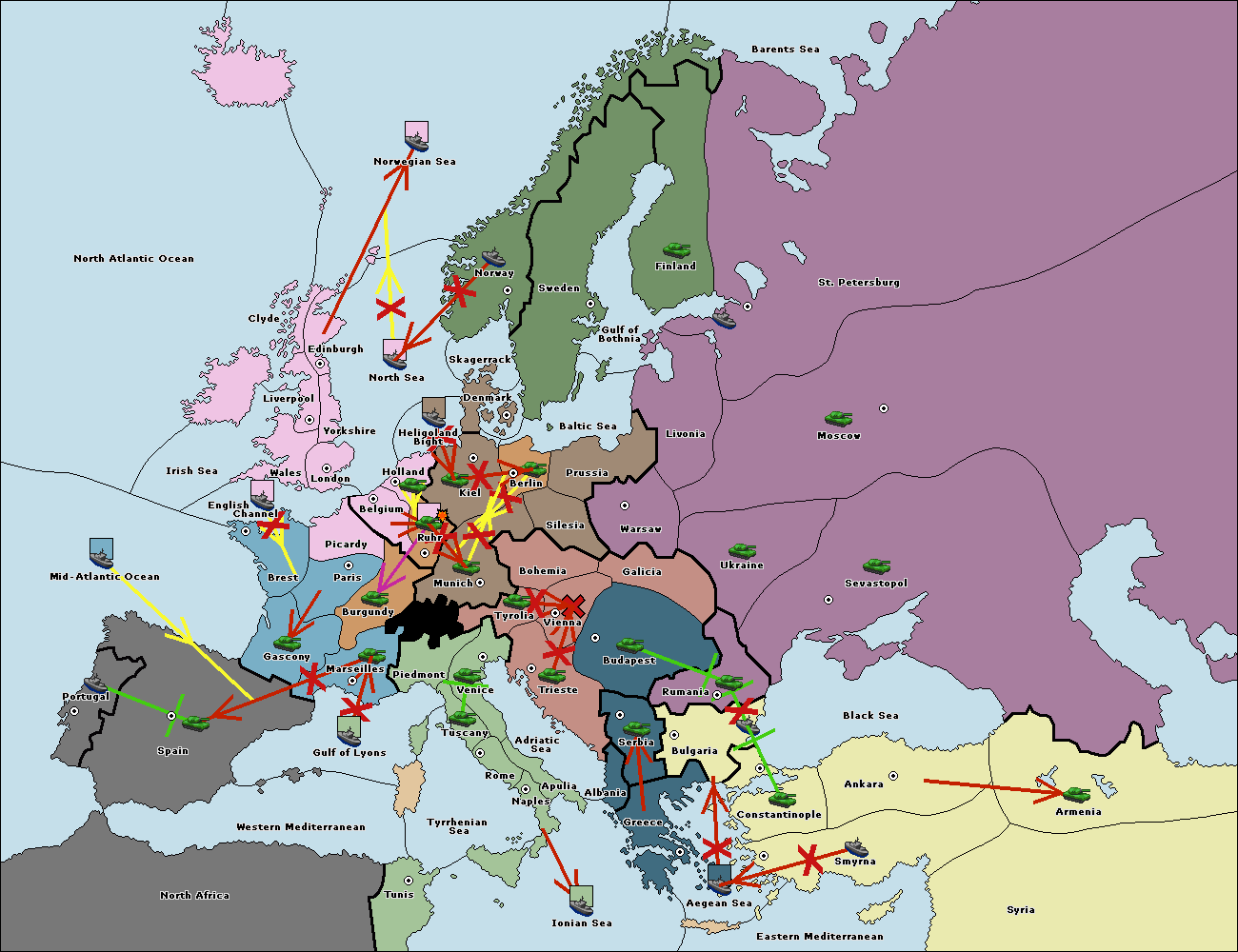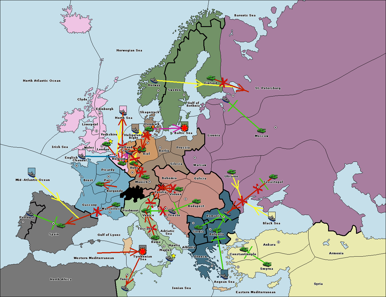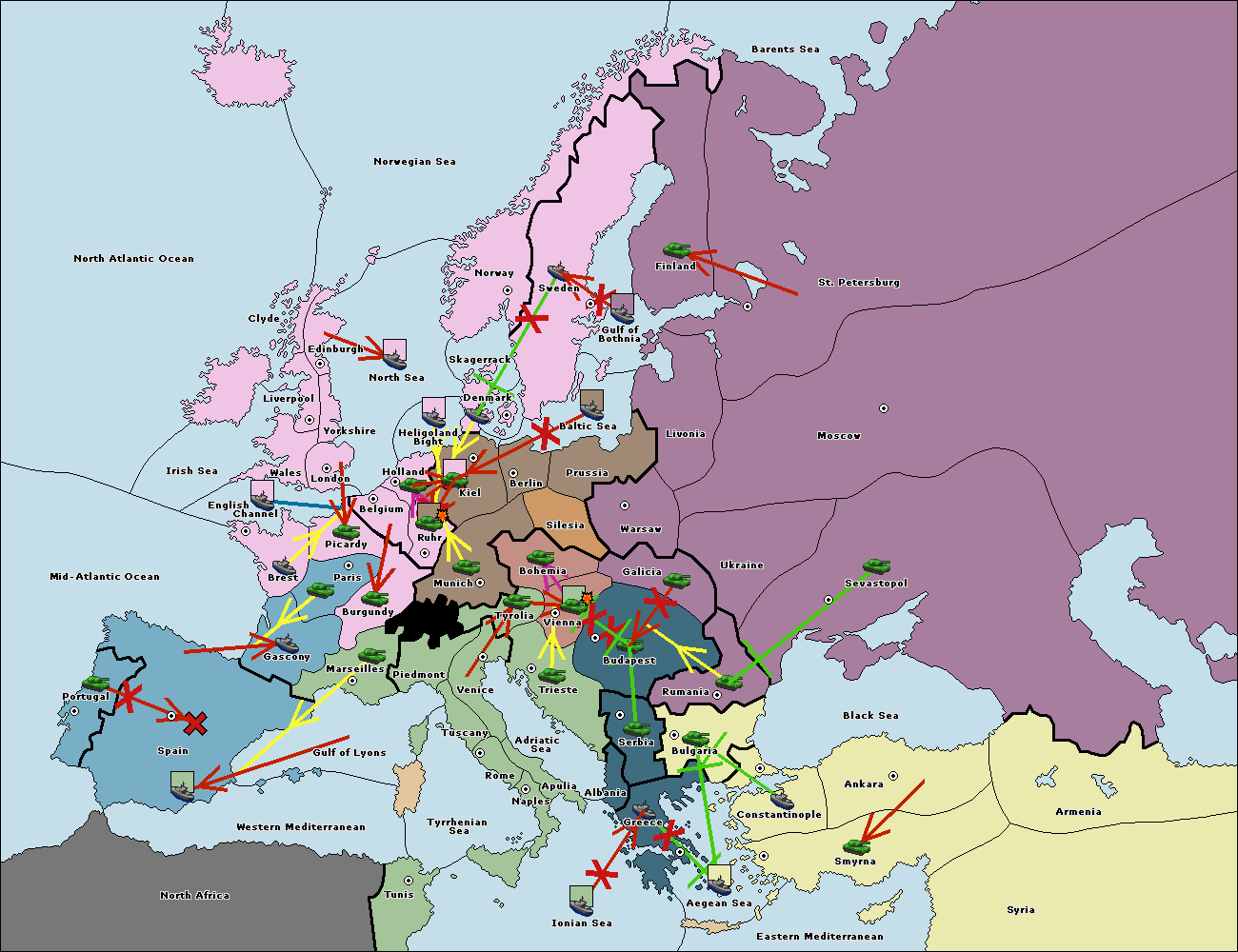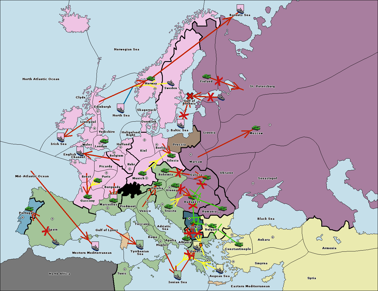 The fleet at Bulgaria (North Coast) support move to Rumania from Sevastopol.