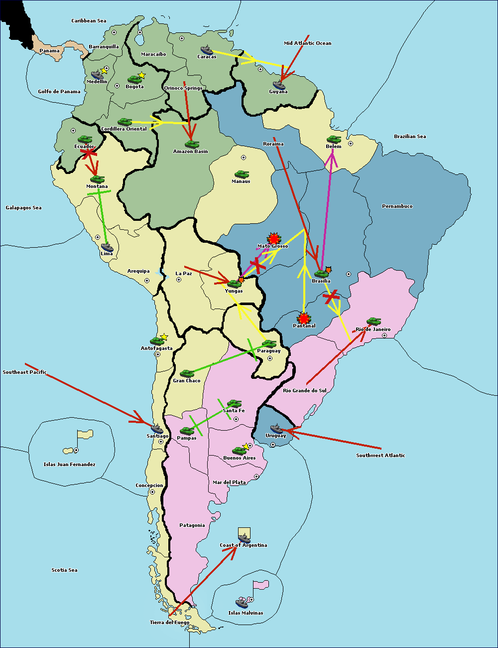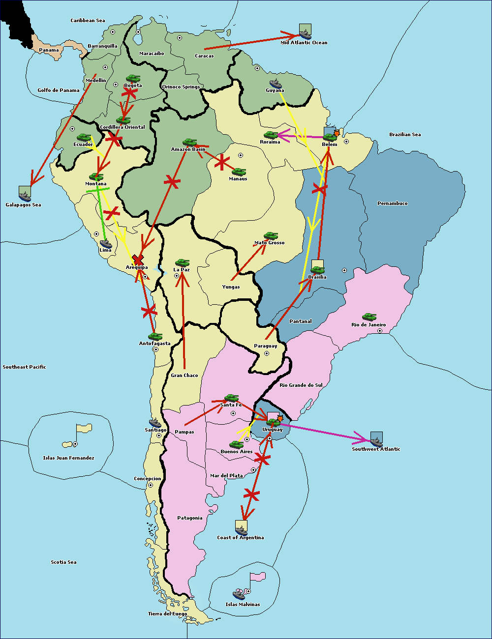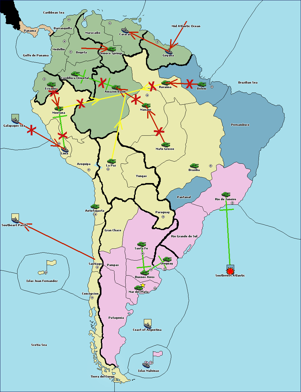 The army at Orinoco Springs move to Amazon Basin.