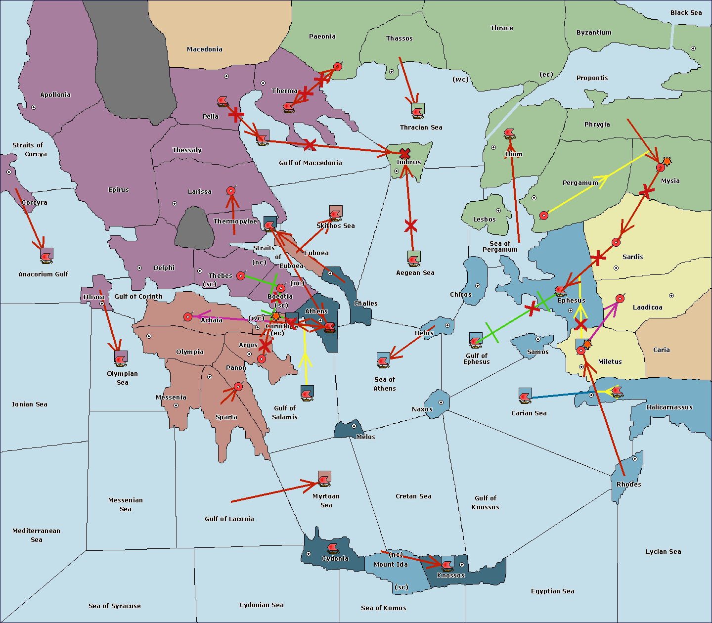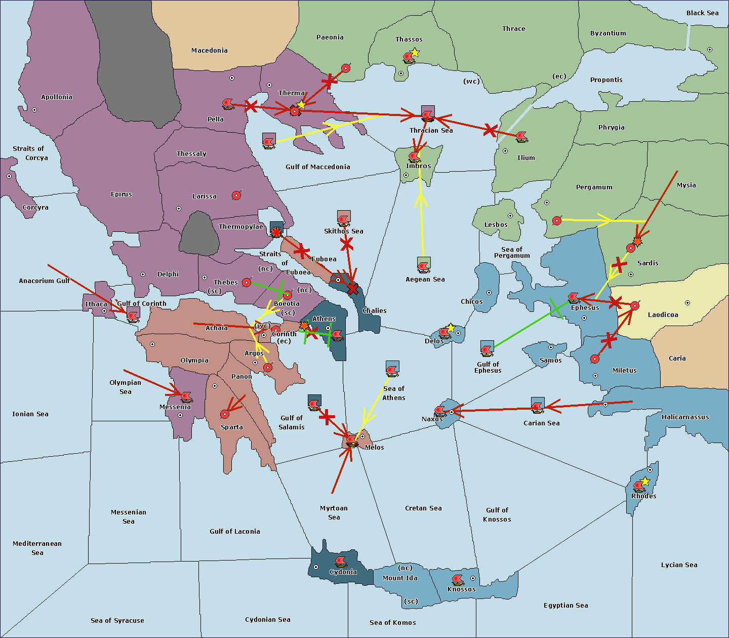The fleet at Sea of Athens support move to Athens from Straits of Euboea.