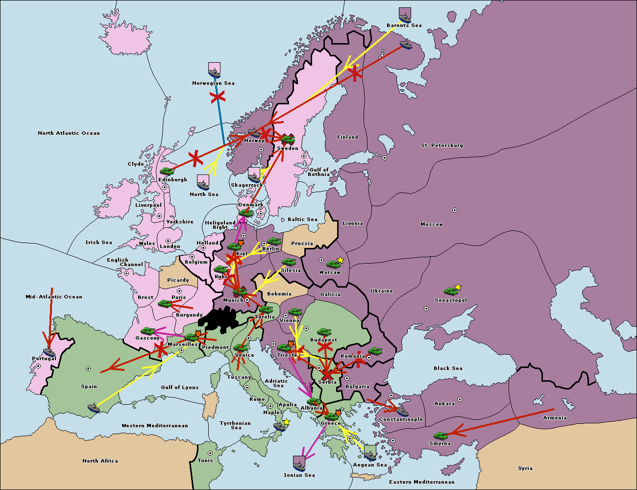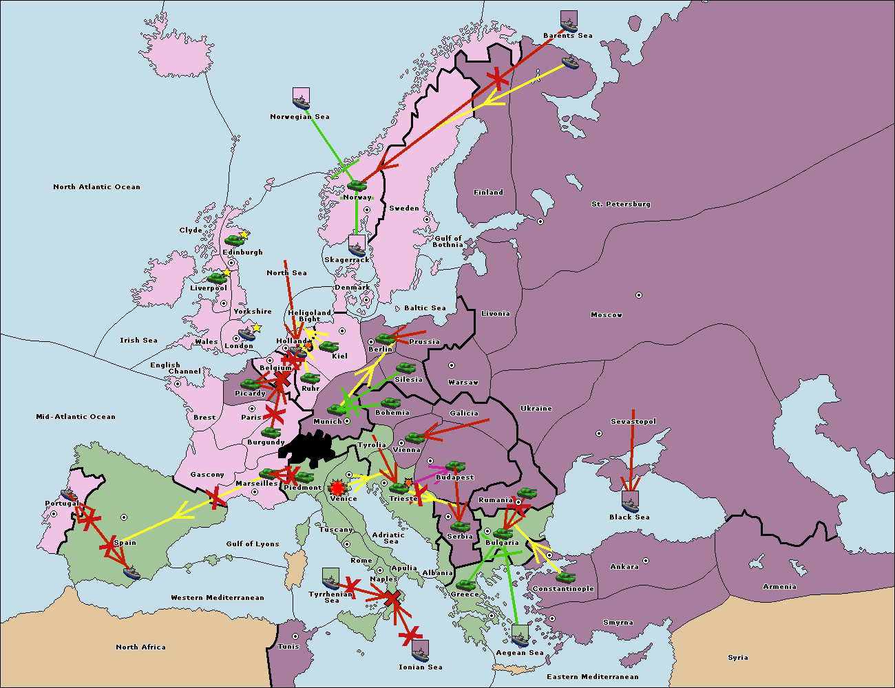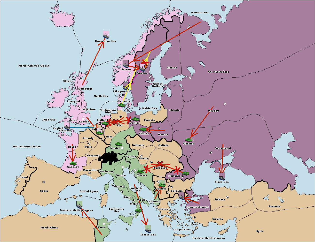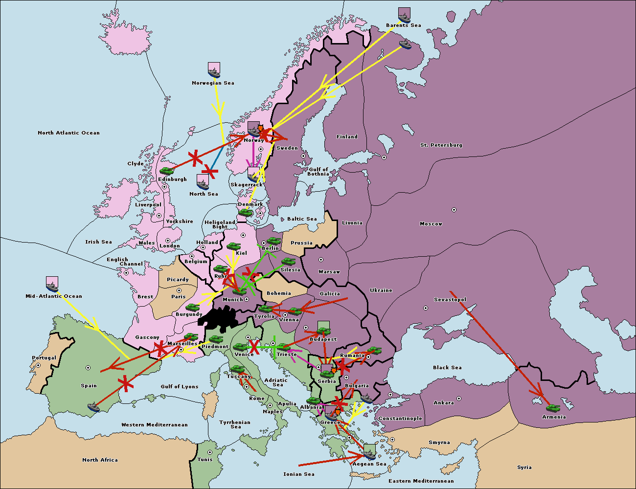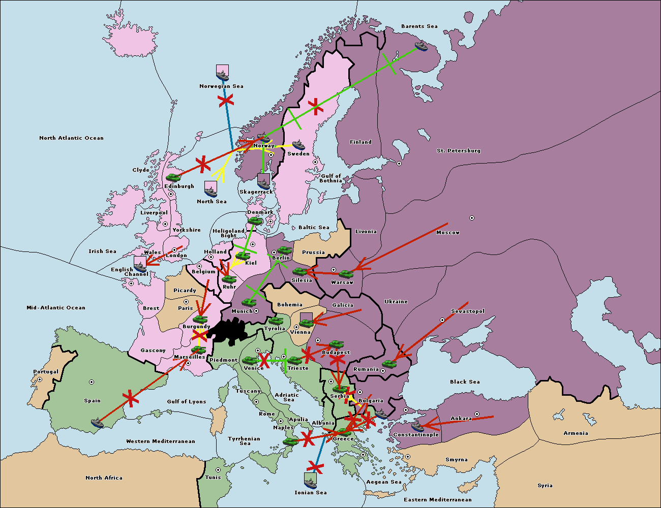 The fleet at Bulgaria (South Coast) support move to Greece from Aegean Sea.