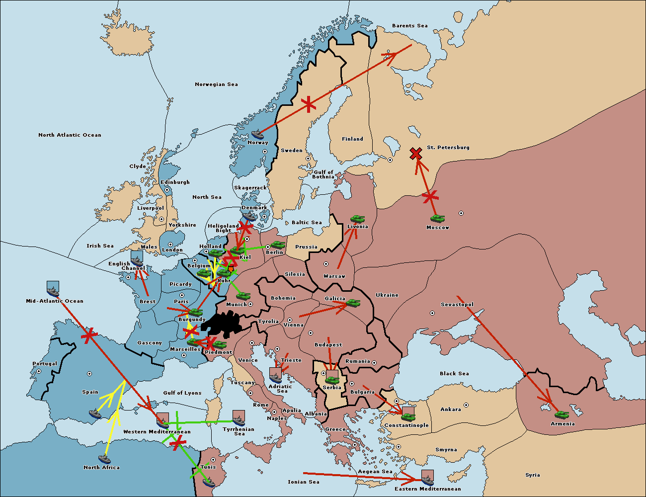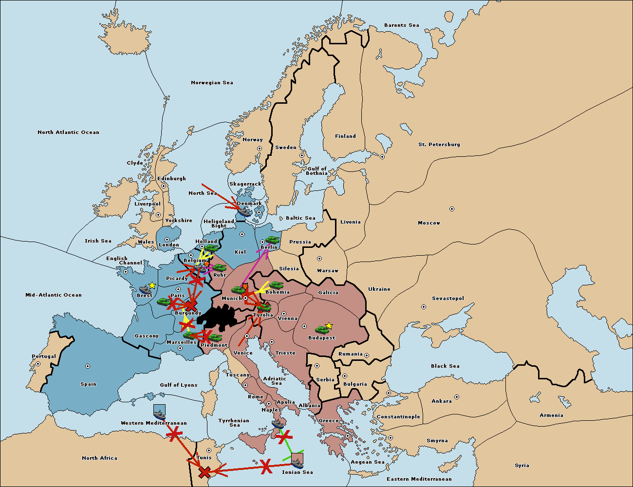 The fleet at Mid-Atlantic Ocean move to Western Mediterranean.