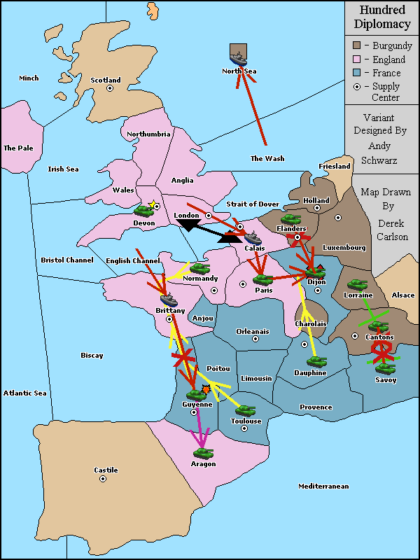 The army at Aragon support move to Guyenne from Brittany.
