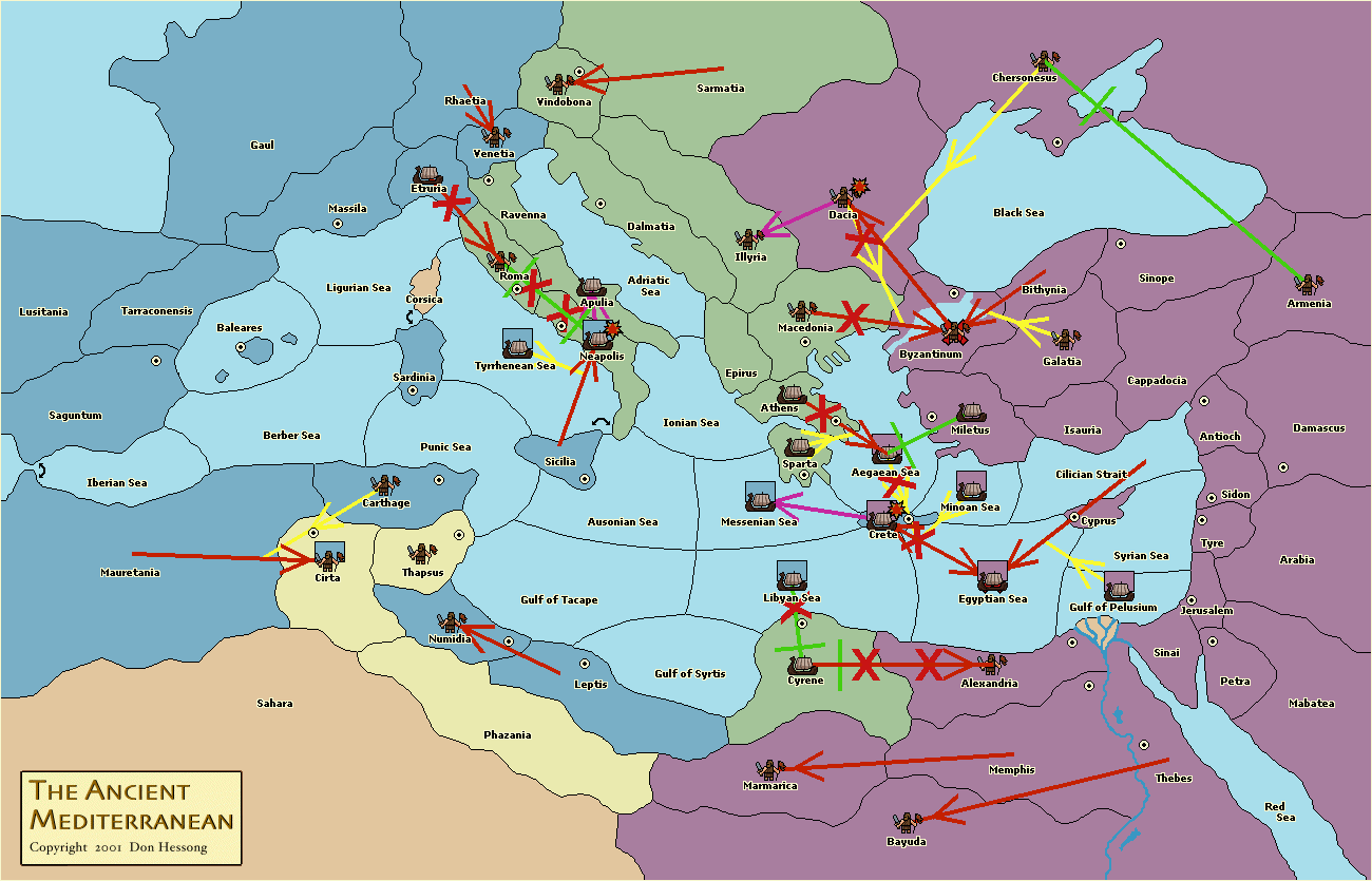 The fleet at Messenian Sea support move to Crete from Aegean Sea.