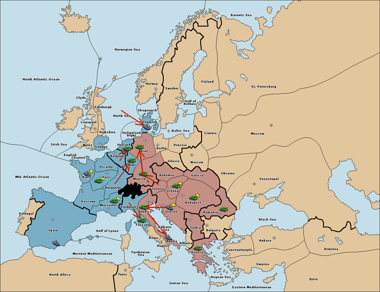 The fleet at Gulf of Lyons support hold to Piedmont.