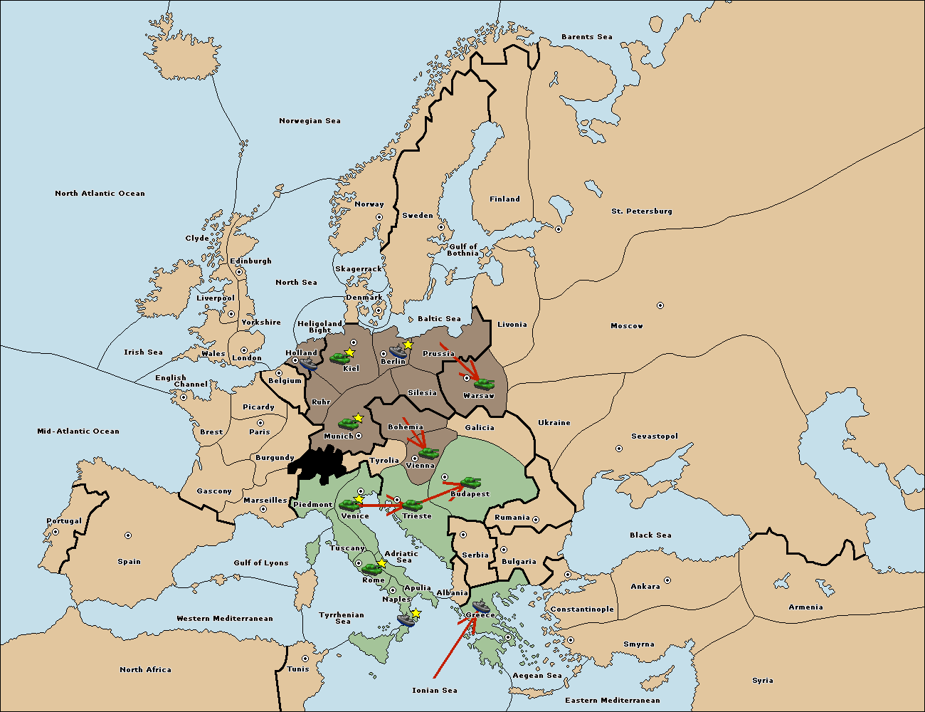 The fleet at Greece move to Bulgaria (South Coast).