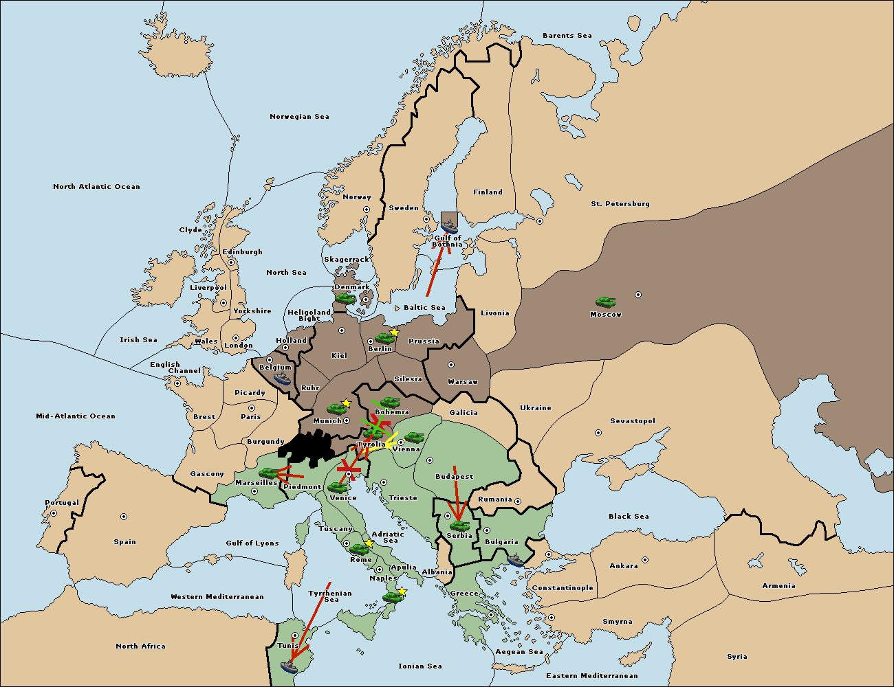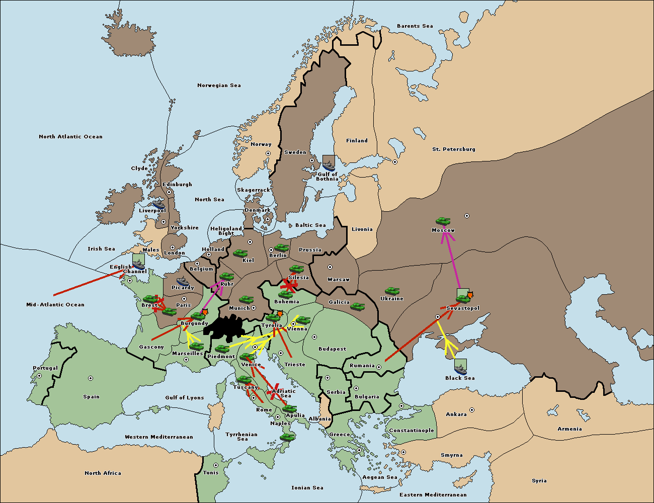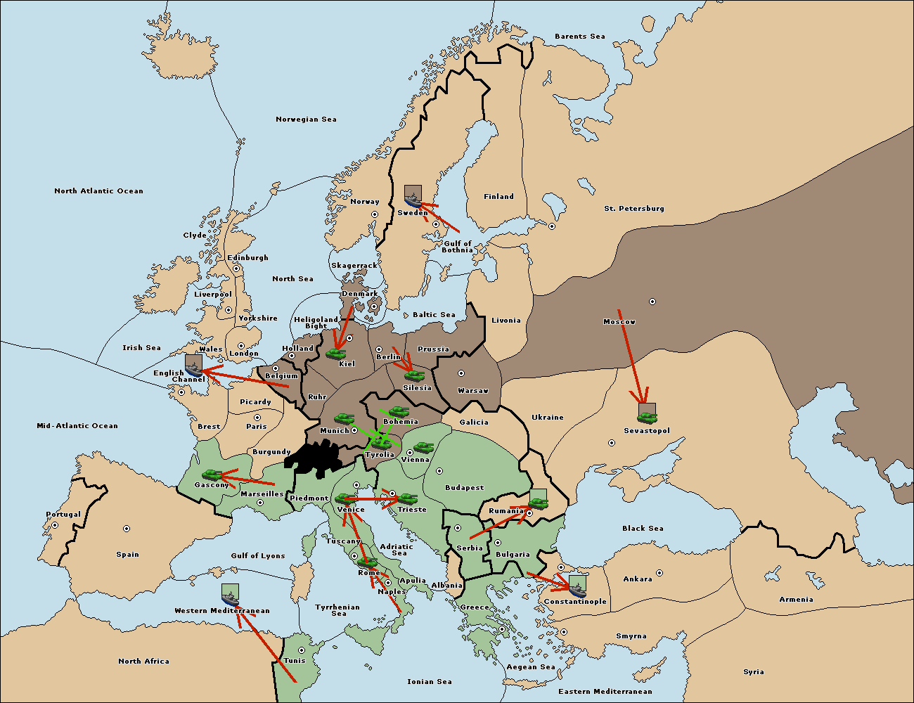 The fleet at Bulgaria (South Coast) move to Constantinople.