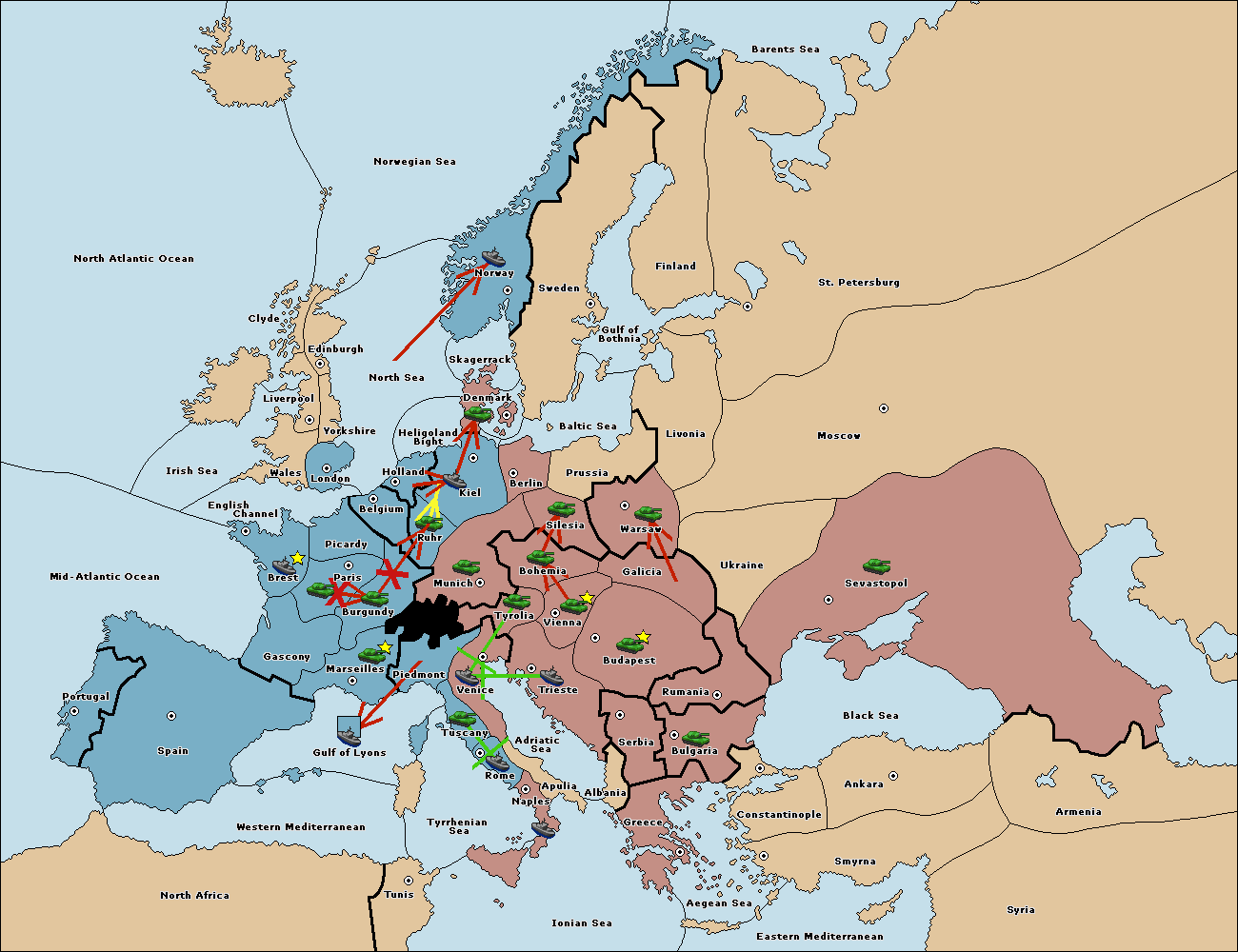 The fleet at Mid-Atlantic Ocean move to Western Mediterranean.