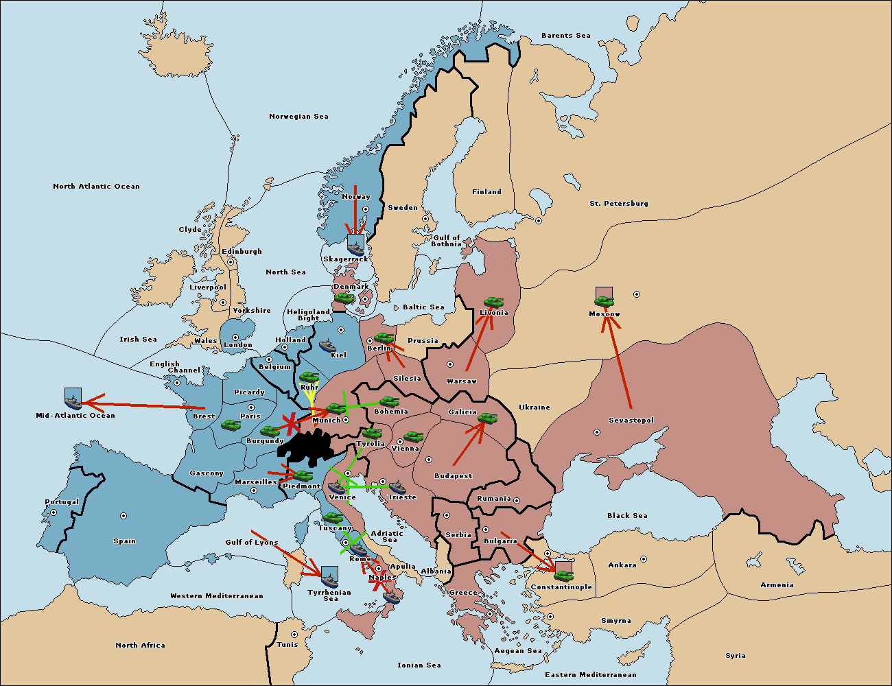 The army at Tyrolia move to Munich.